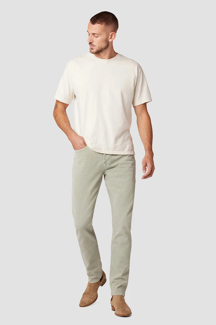 A slim signature, our mid-rise Axl is perfectly fitted through the hip, thigh, and leg. The Light Sage wash is cut from premium comfort stretch denim with classic five-pocket details.