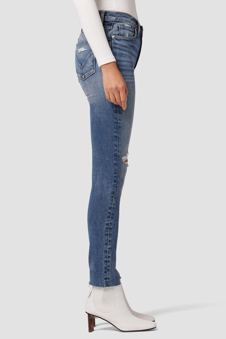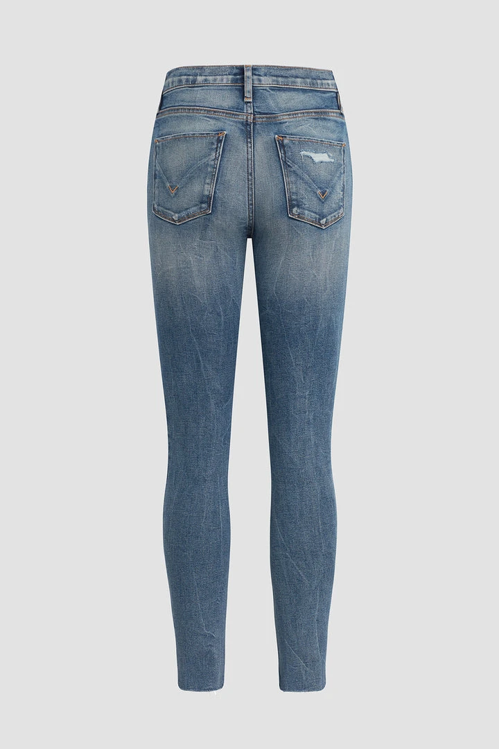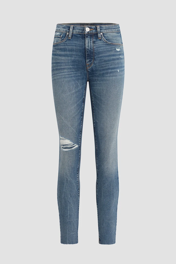 Our Barbara High-Rise Super Skinny Ankle Jean in medium indigo Daybreak is a slim, contoured fit with a high, holds-you-in waistline. Made from premium super stretch denim, it’s finished with a vintage-feel distressing and sewn with faux front pockets for a smooth silhouette.