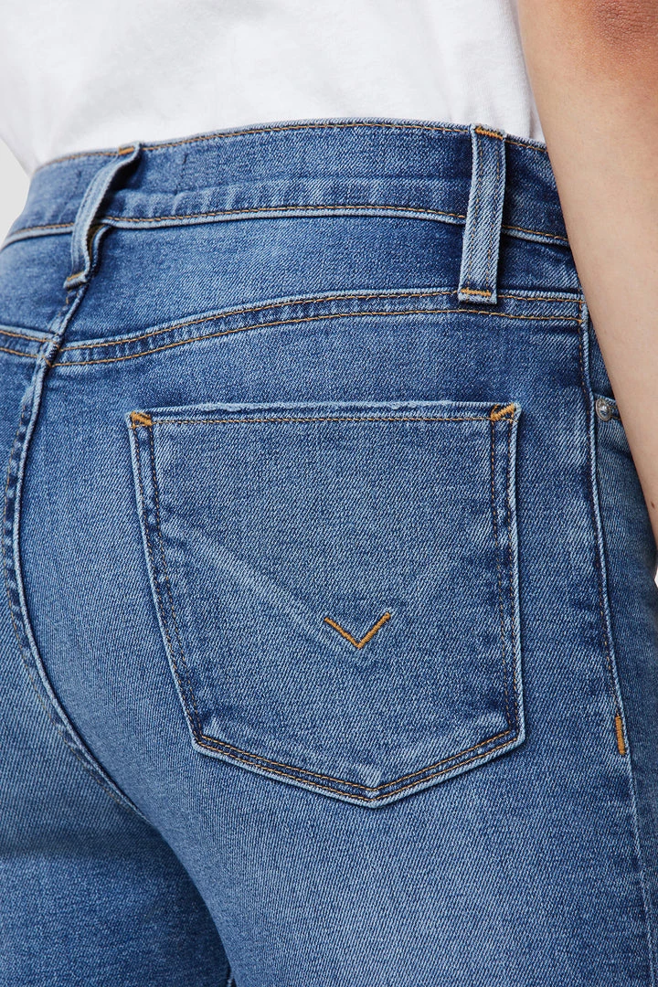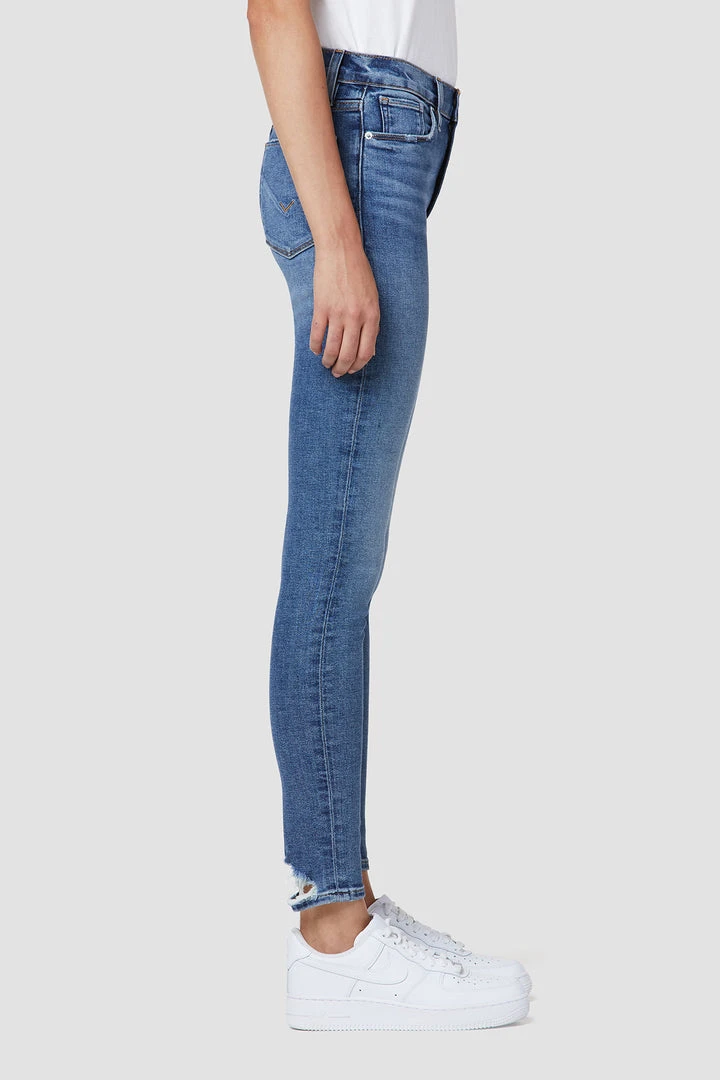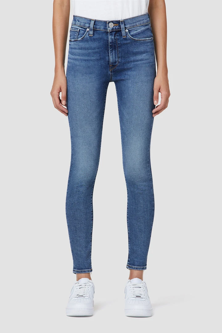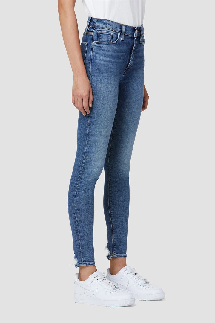 Our Barbara High-Rise Super Skinny Jean in medium indigo Adored features a slim, contoured fit, an elevated waistline, and a destructed hem. Made from premium super stretch denim, itβs finished with classic five-pocket details.