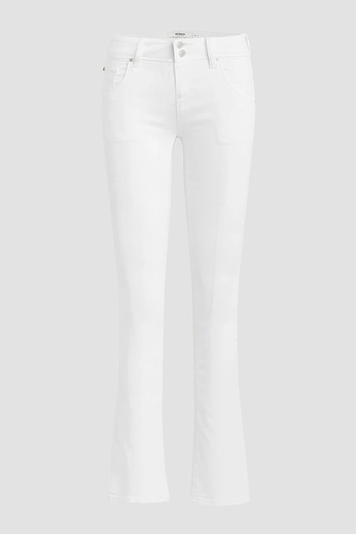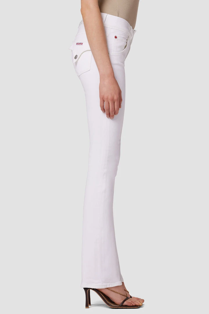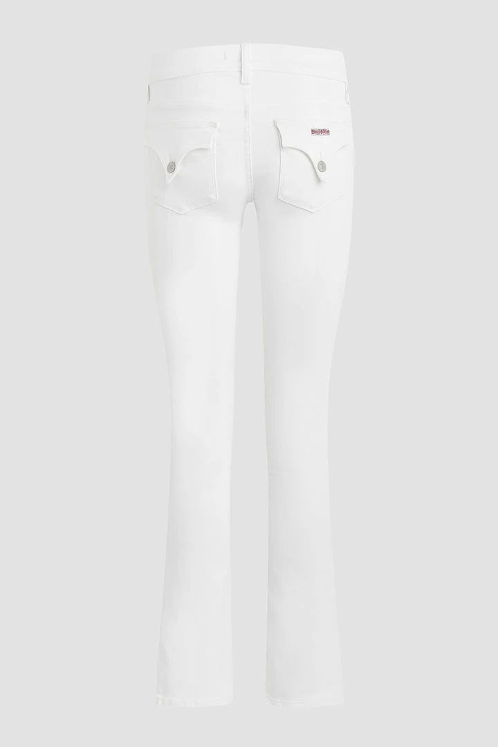 Cut with premium super stretch denim that smooths, sculpts, and will never sag, our Beth Mid-Rise Baby Bootcut Petite Jean in White features a subtly flared silhouette and our signature button-flap back pockets.