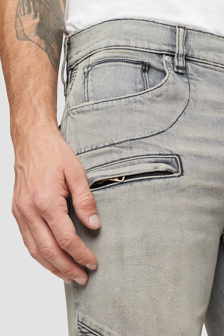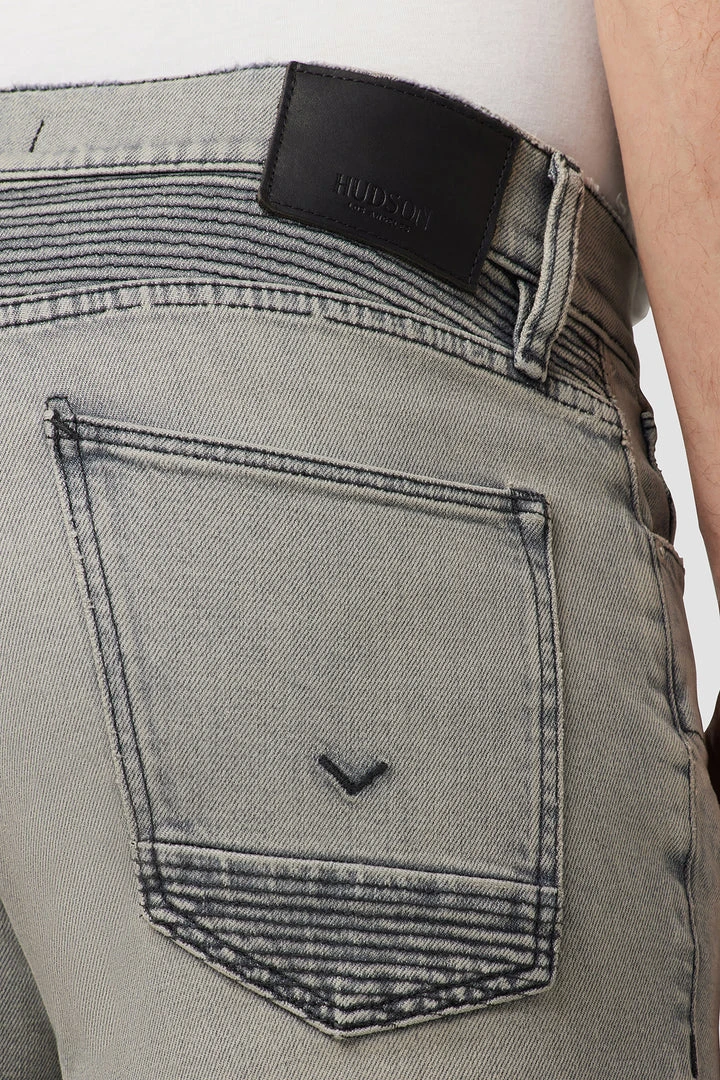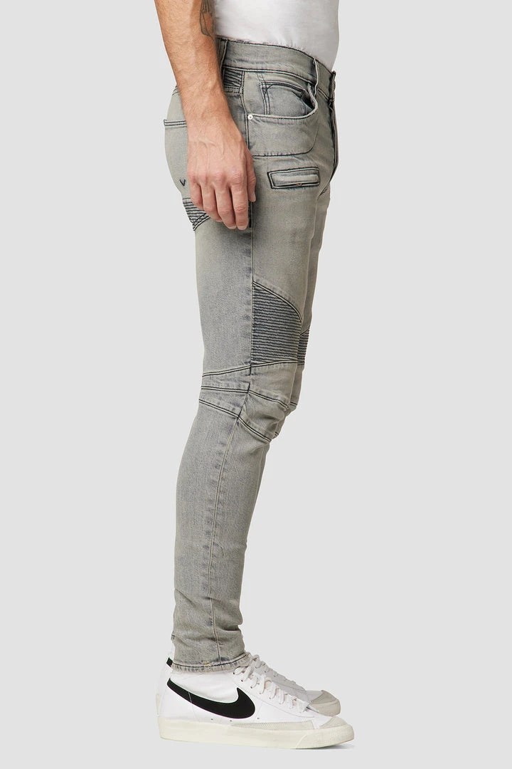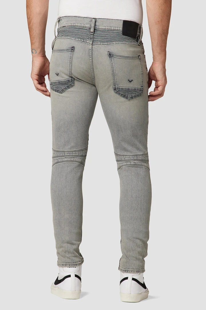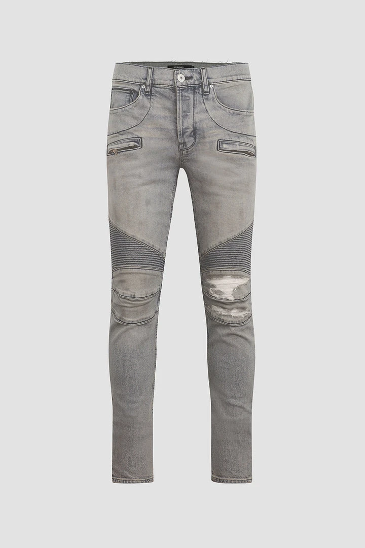 Our moto-inspired Blinder Biker V2 Skinny is cut extra-slim with a 36” inseam from premium comfort stretch denim. The vintage grey Shadow Ave wash features two front zip pockets, ribbed leg panels, and expert distressing.