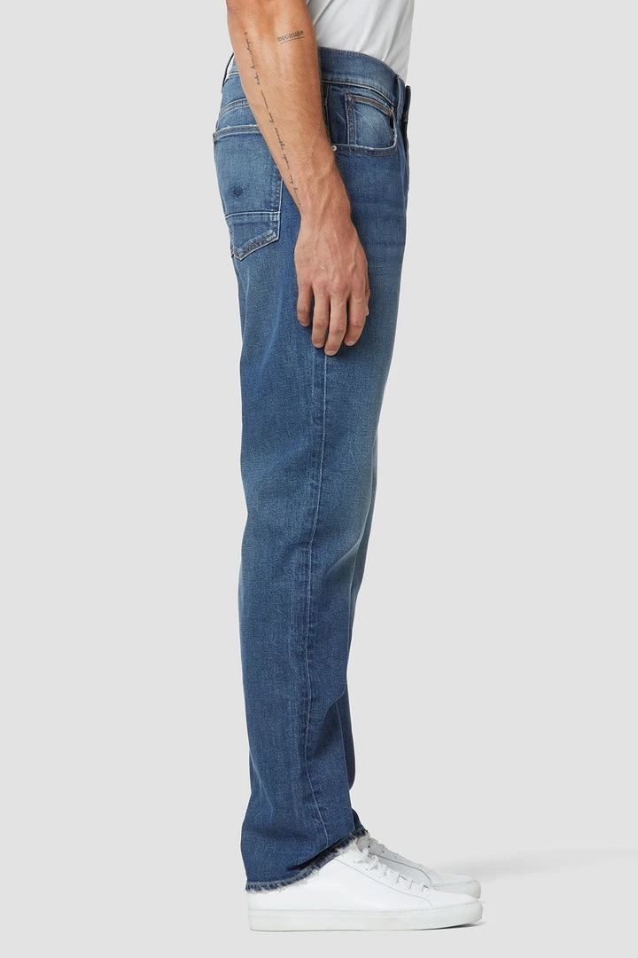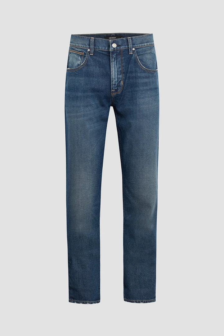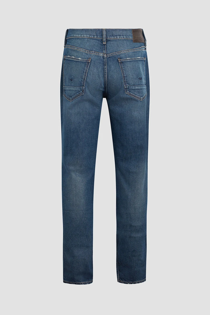Byron is our most relaxed fit. Mid-rise, straight through the hip and thigh with a straight leg. A classic. The medium indigo Freemont wash is cut from premium stretch denim with subtle fading for vintage character.
