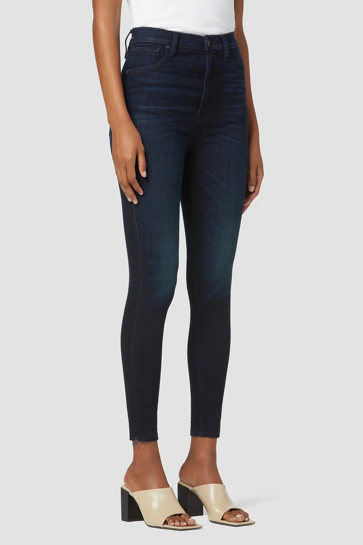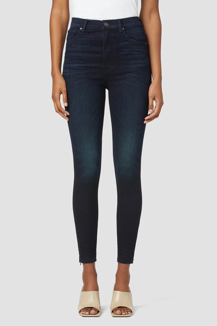 Our Centerfold Extreme High-Rise Super Skinny Jean in dark indigo Turning Point features an ultra-elevated, leg-lengthening rise. Cut from premium super stretch denim, it’s complete with ankle zippers for a perfectly tight taper.