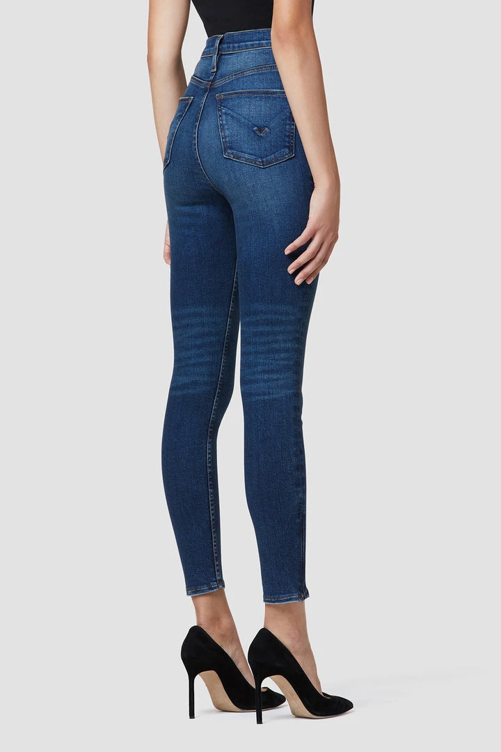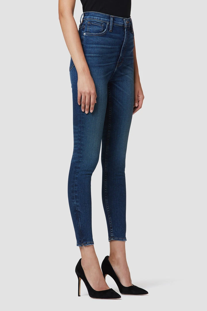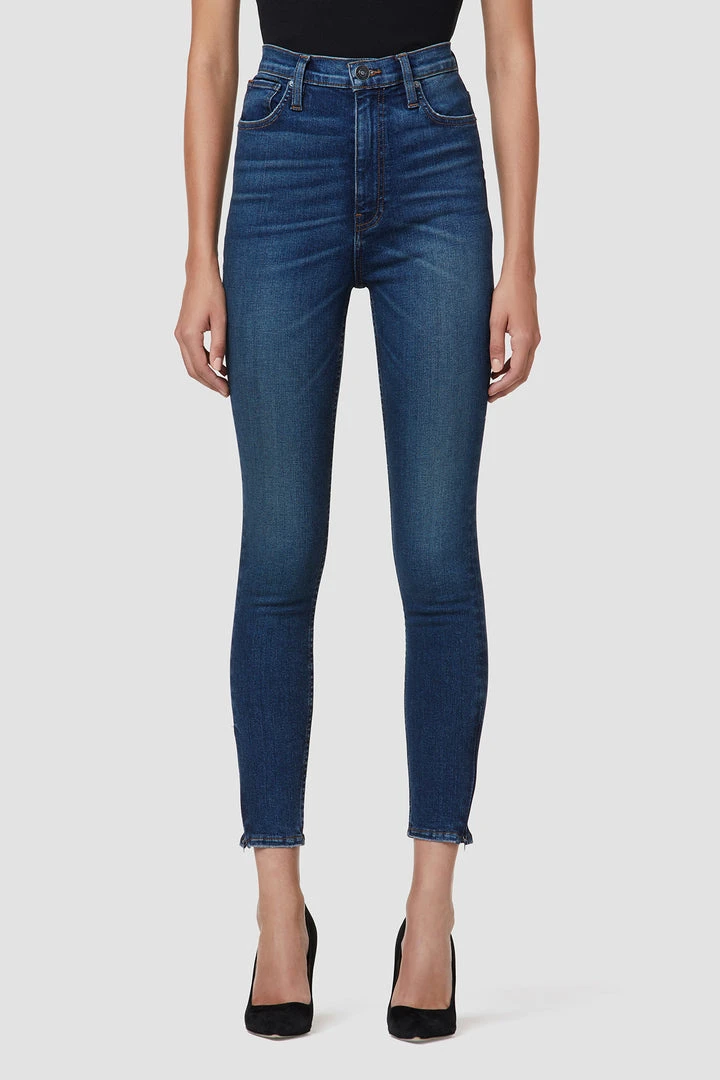 Our Centerfold Extreme High-Rise Super Skinny Jean in medium indigo Fun Times features an ultra-elevated, leg-lengthening rise. Cut from premium comfort stretch denim, it’s complete with vintage-feel fading and ankle zippers for a perfectly tight taper. This low-impact pair is made with GOTS-certified organic cotton and GRS-certified recycled elastane. Our denim factory partner uses a patent technology that expends 30% less energy, 50% less water, and 70% less chemicals compared to traditional dyeing processes—plus reduces the amount of microplastic waste.