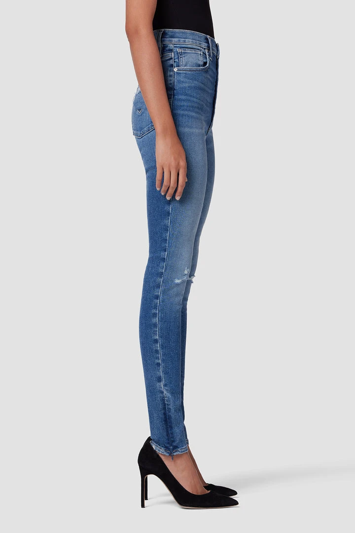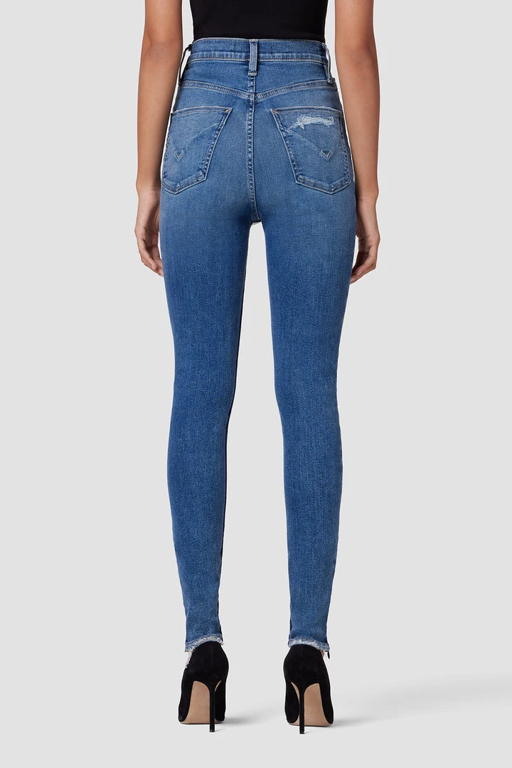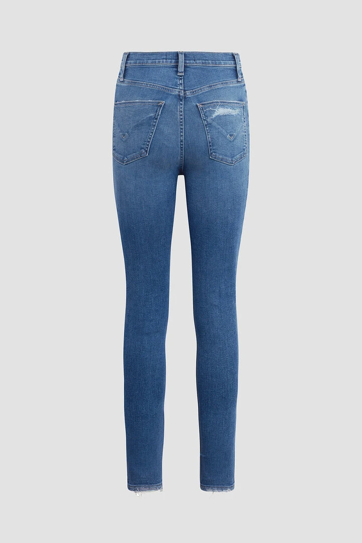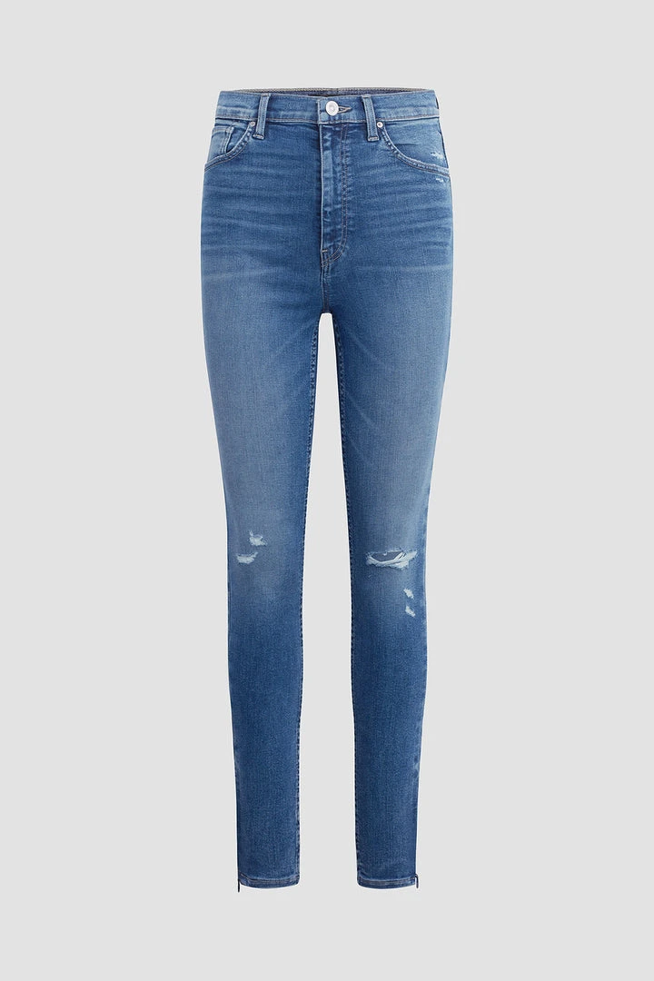 Our Centerfold Extreme High-Rise Super Skinny Jean in medium indigo Blue Dust features an ultra-elevated, leg-lengthening rise. Cut from premium comfort stretch denim, it’s complete with knee destruction and ankle zippers for a perfectly tight taper. This low-impact pair is made with GOTS-certified organic cotton and GRS-certified recycled elastane. Our denim factory partner uses a patent technology that expends 30% less energy, 50% less water, and 70% less chemicals compared to traditional dyeing processes—plus reduces the amount of microplastic waste.