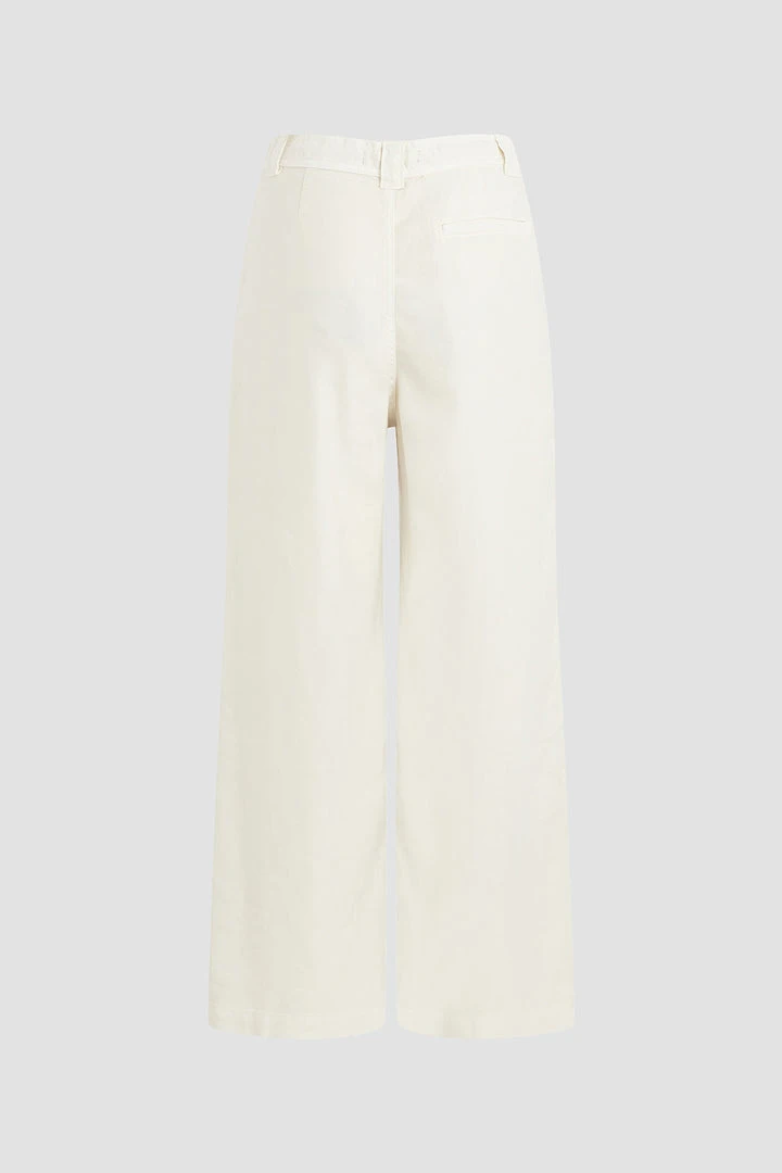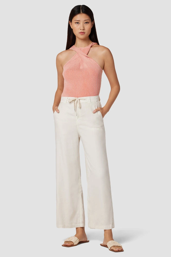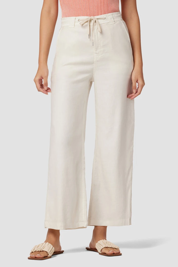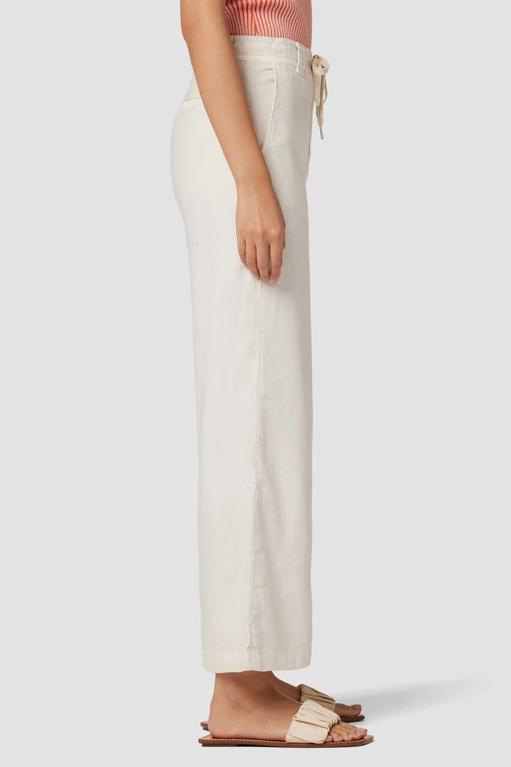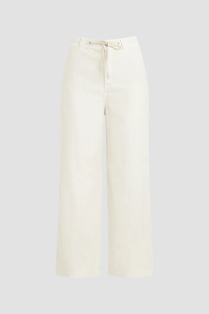 Go wide. Our Drawstring Wide Leg Crop Trouser in Egret is cut with a high rise and cropped wide leg from one of our softest, airiest fabrications. Features a button closure and adjustable drawstring waistband.