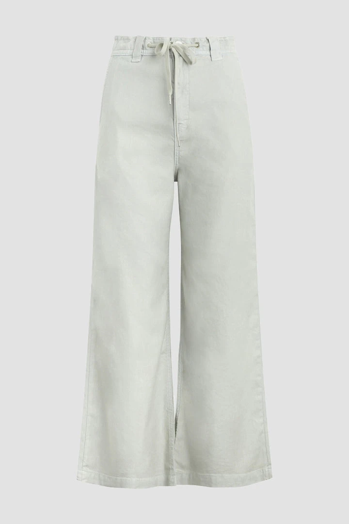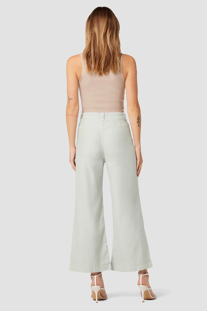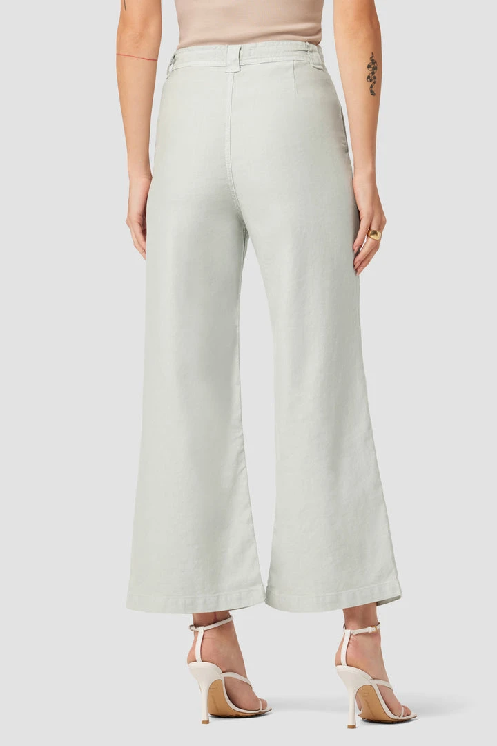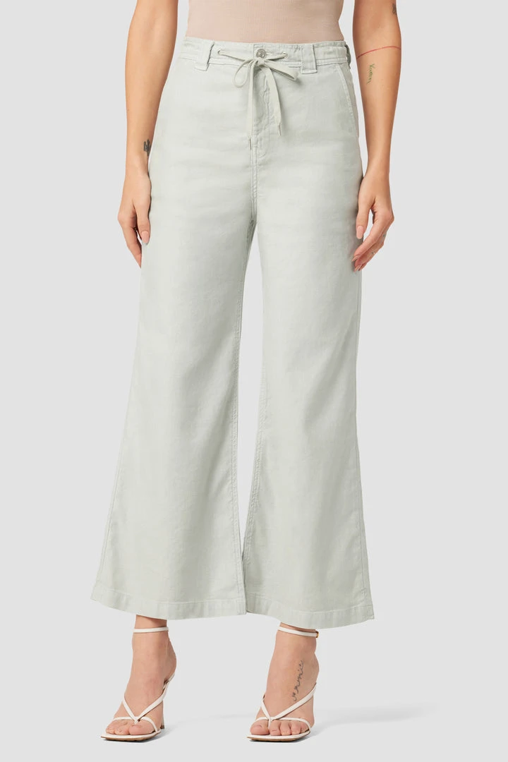 Go wide. Our Drawstring Wide Leg Crop Trouser in Storm Grey is cut with a high rise and roomy leg from one of our softest, airiest fabrications. Features a button closure, cropped hem, and adjustable drawstring waistband.