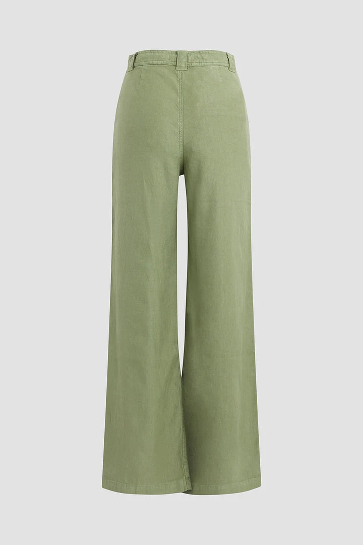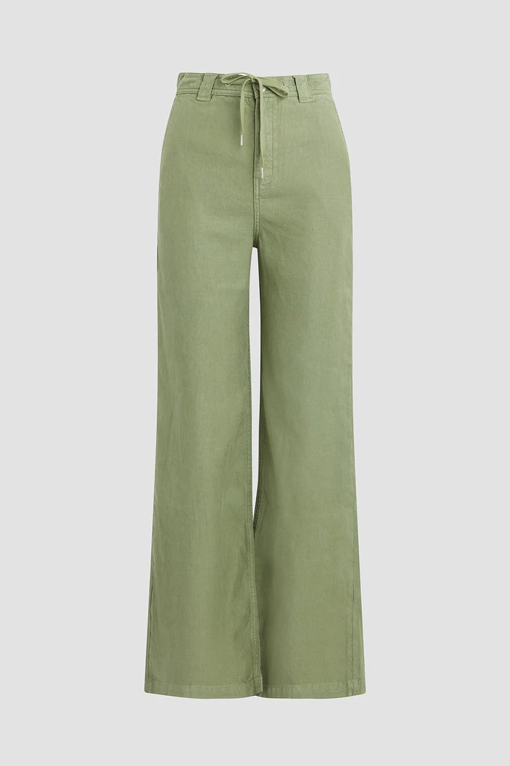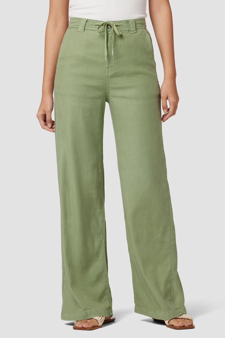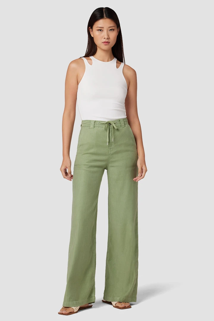 Go wide. Our Drawstring Wide Leg Trouser in Mistletoe is cut with a high rise and roomy leg from one of our softest, airiest fabrications. Features a button closure and adjustable drawstring waistband.