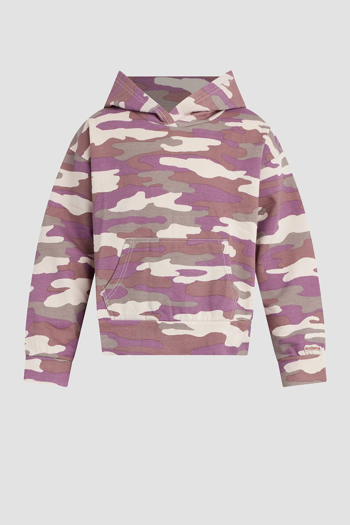 Our Camo Hoodie, sizes 7-16, in Lavender Mist is cut for a classic fit from comfortable cotton and features a kangaroo pocket.
