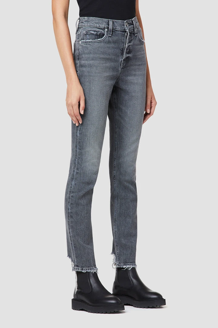 Our Holly High-Rise Straight Jean in medium indigo Foggy Night is cut from premium comfort stretch denim washed to vintage perfection. Features classic five-pocket details and a finished hem.