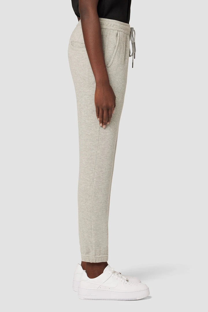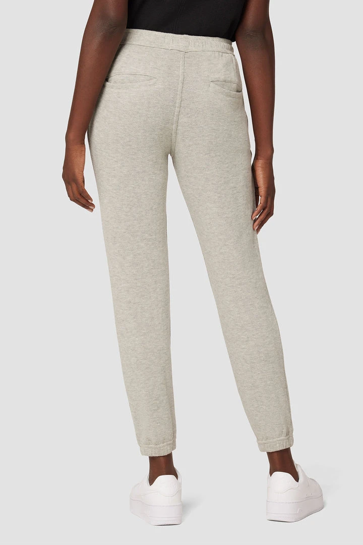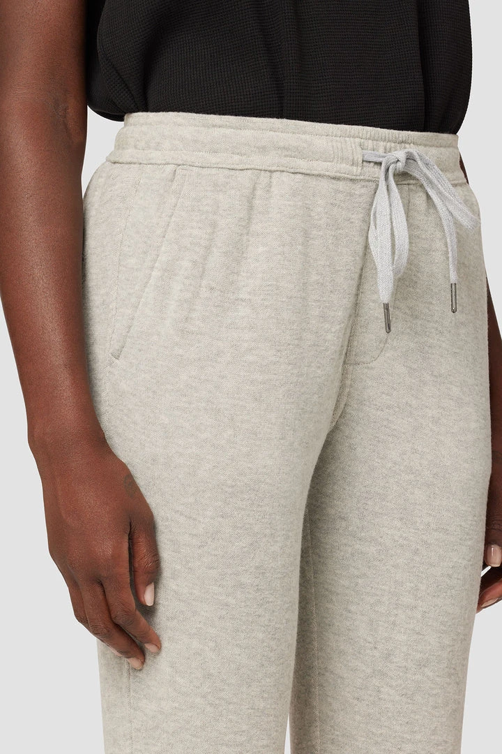 Our Knit Jogger in Light Oatmeal Heat features an elastic drawstring waistband, elastic hems, and a slim fit.