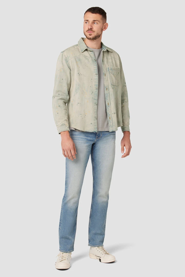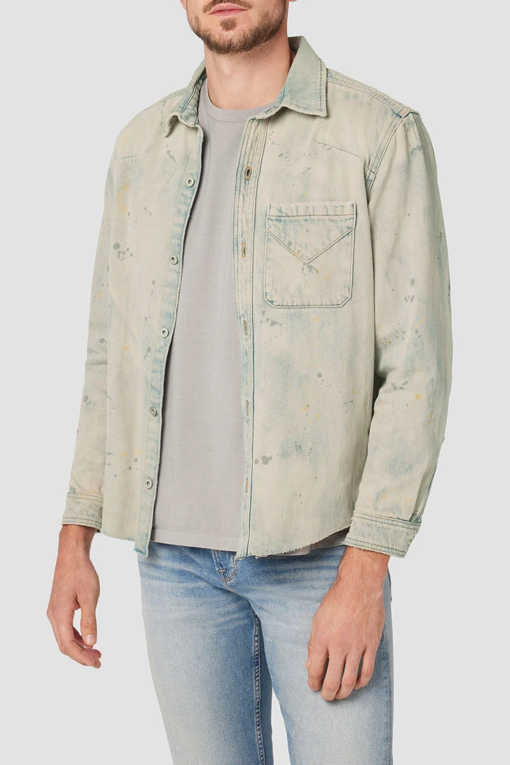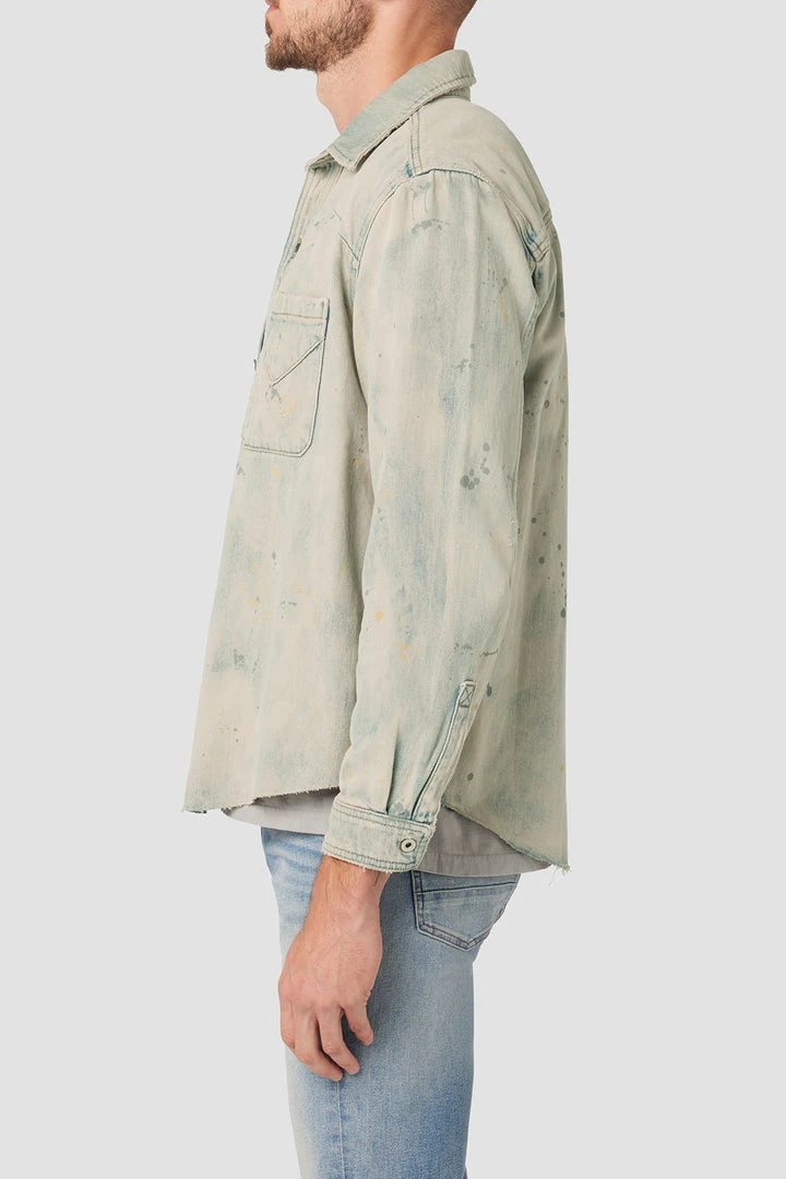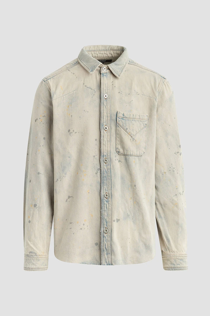 Our Lightweight Denim Shirt in Stripped Paint is cut for a classic fit from breathable cotton. Specially washed and paint-spattered for a worn-in feel, it features a button front, raw-edge hem, and single chest pocket.