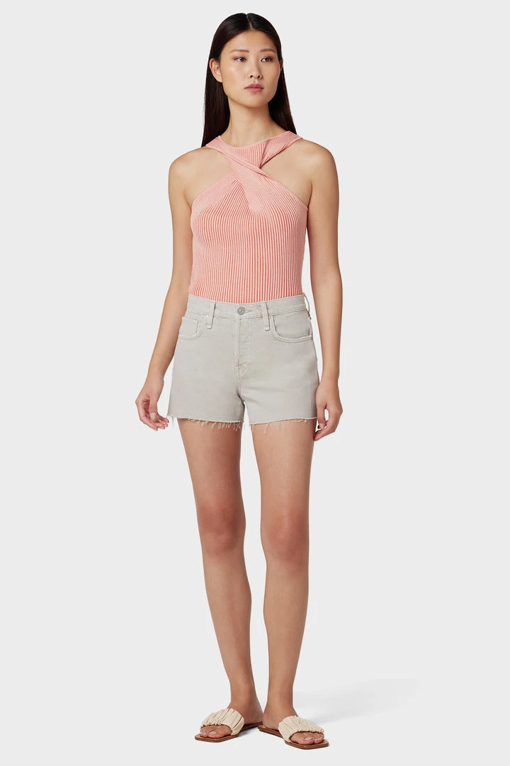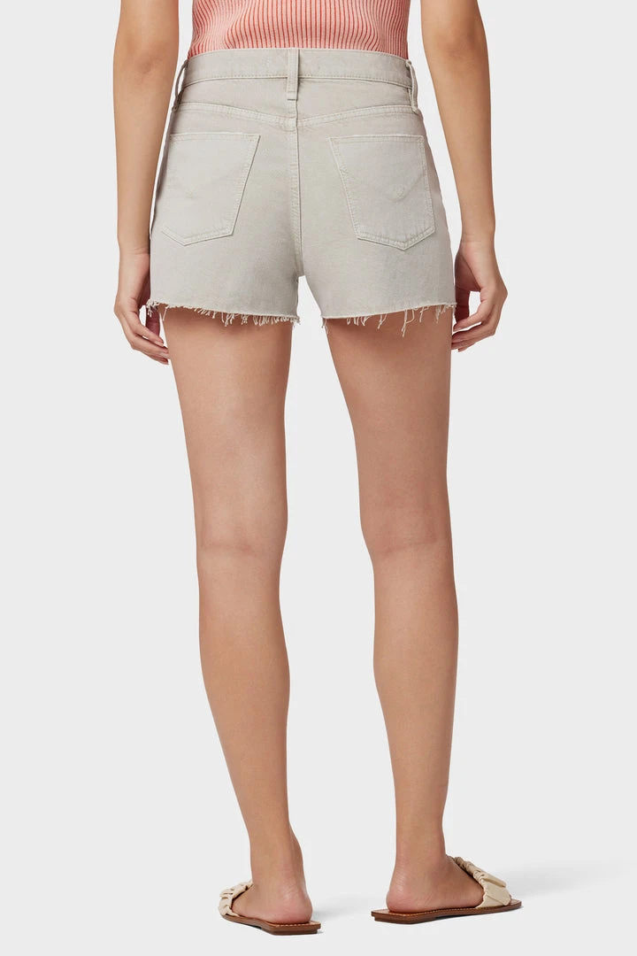 Made from expertly washed 100% cotton, our Lori High-Rise Short in Distressed Peyote is cut loose for a roomier fit. Features a cutoff hem and classic five-pocket details.