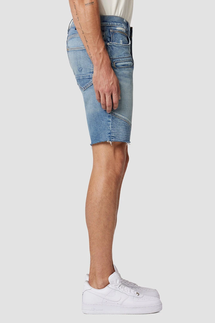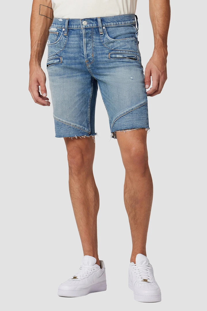 Our moto-inspired Blinder Short is cut slim from premium denim with a hint of stretch for added softness, comfort, and flexibility. The Echoes features two front zip pockets, ribbed leg panels, and a cutoff hem.