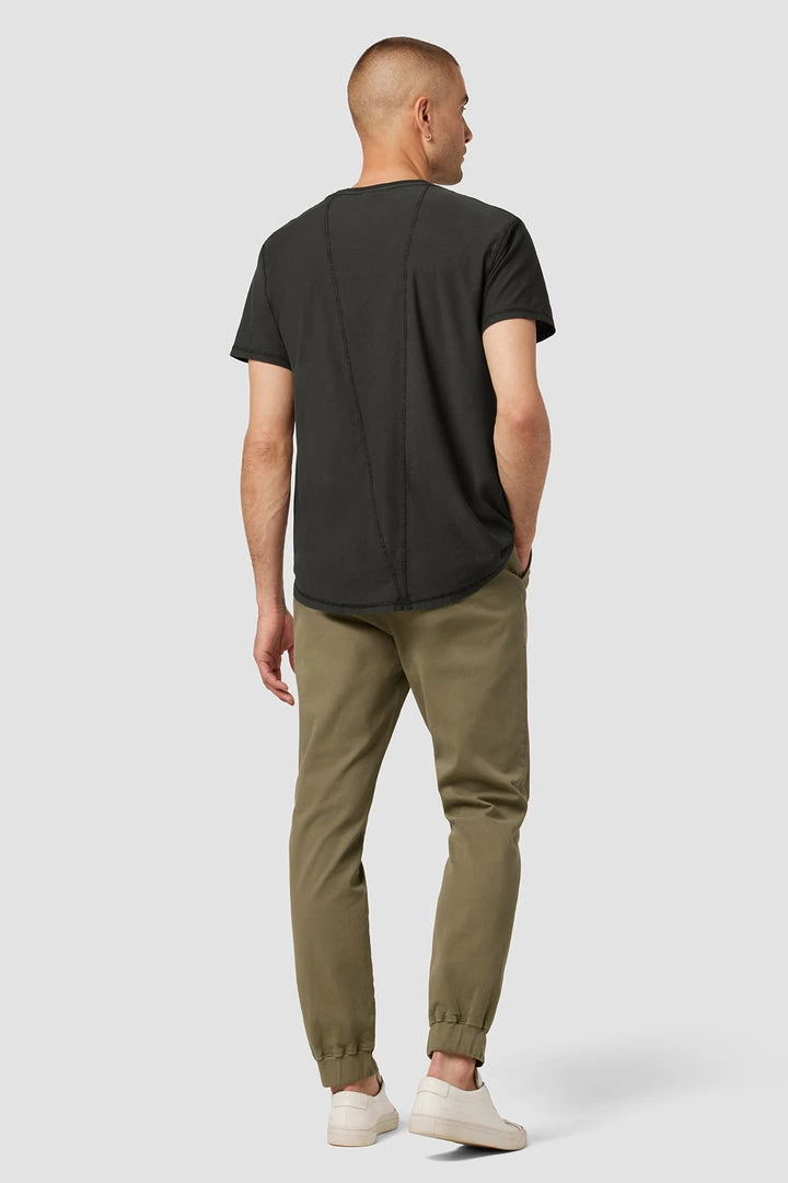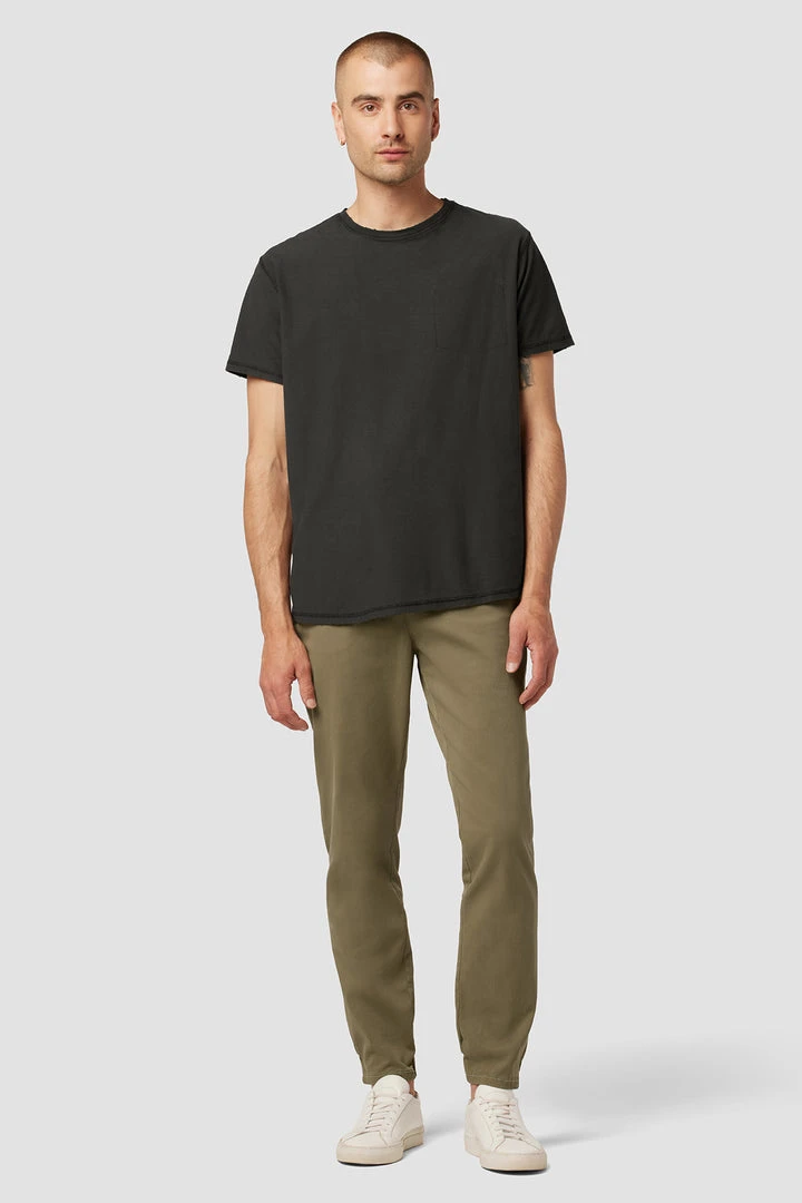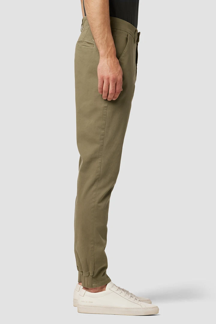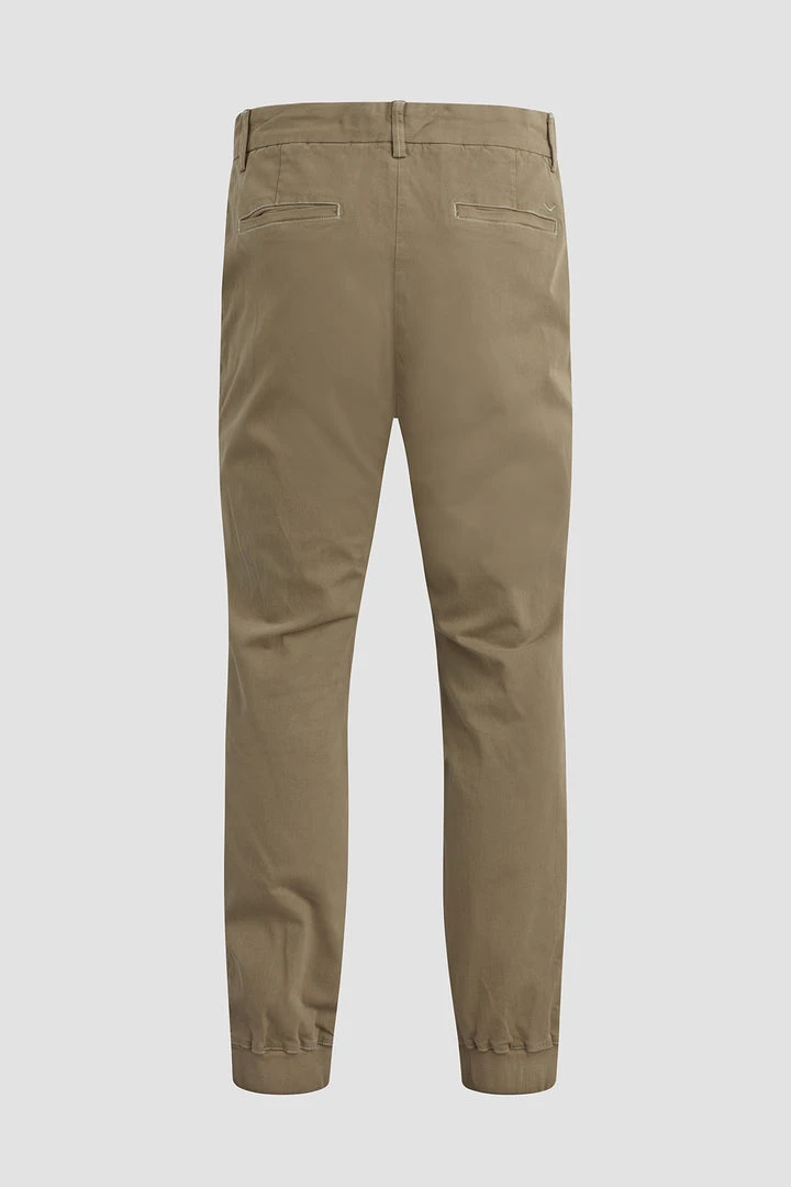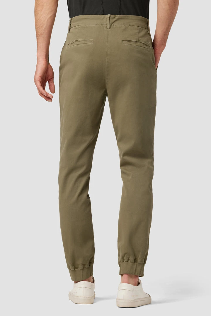 A fresh spin on a closet staple, our Eli Classic Chino with Elastic Hem in Light Army is cut for an easy fit from a comfort stretch twill.