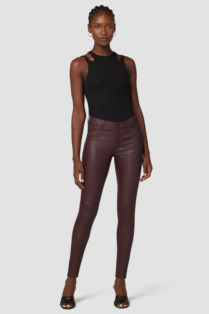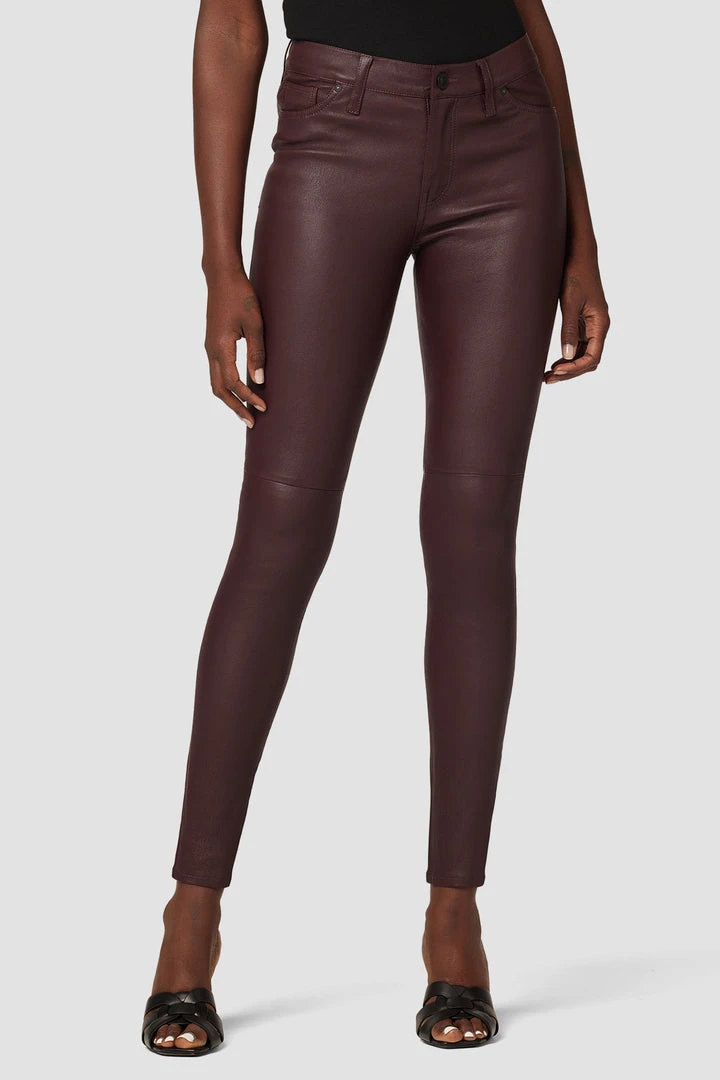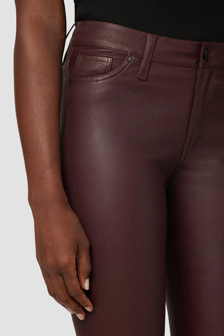 Cropped for the ideal ankle length, our Nico Mid-Rise Super Skinny Ankle Jean Burgundy is cut for a sleek shape with a high-shine finish. Body-hugging fit. Sits at the natural waist. Complete with classic five-pocket details.