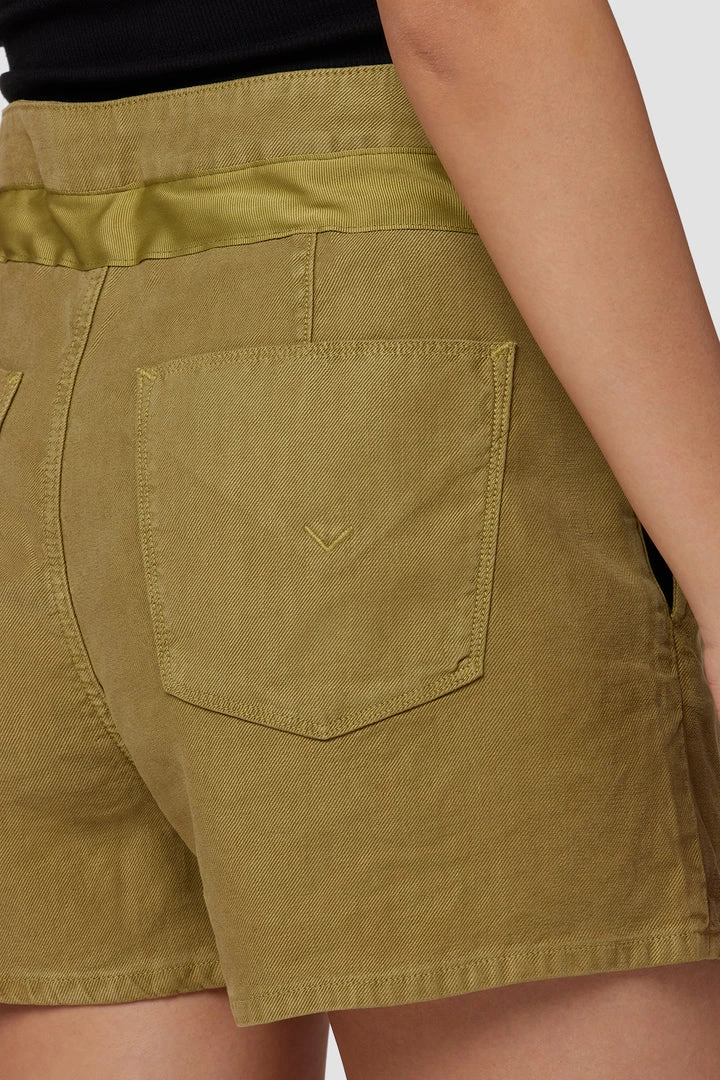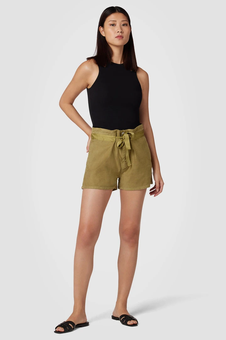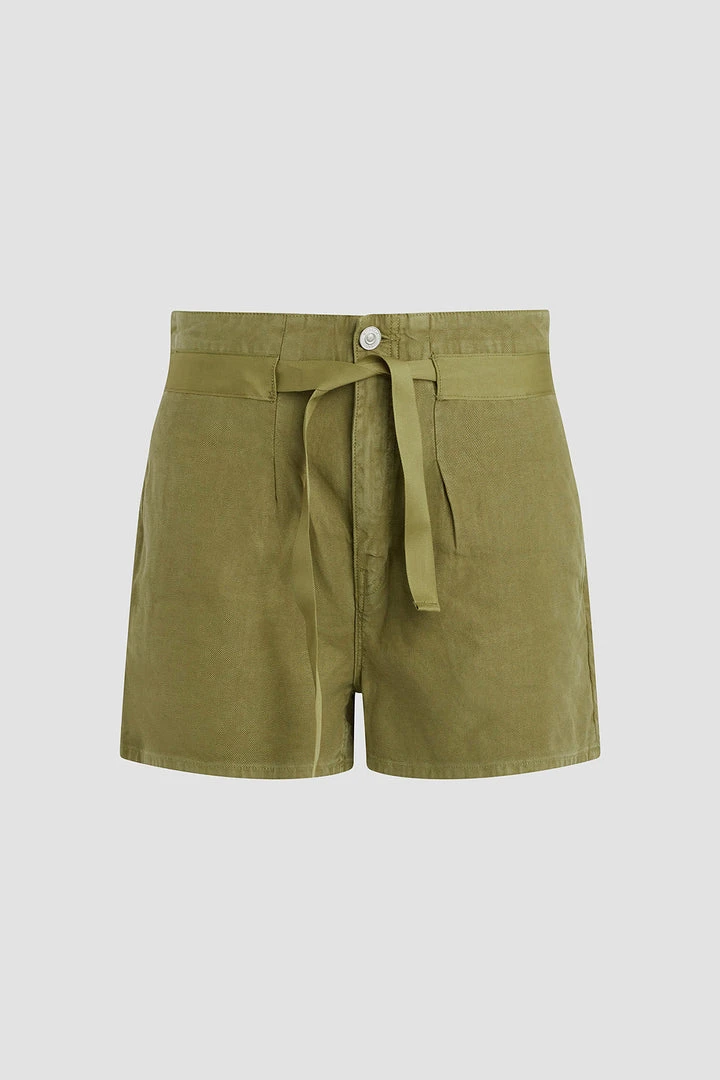 Our Paper Bag Short in Green Moss is cut for an easy fit from a super-soft and lightweight twill. Features a pleated paper bag waist, self-belt, and finished hem.