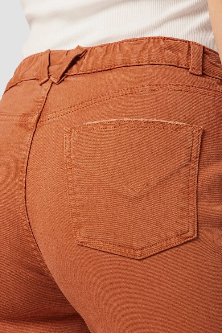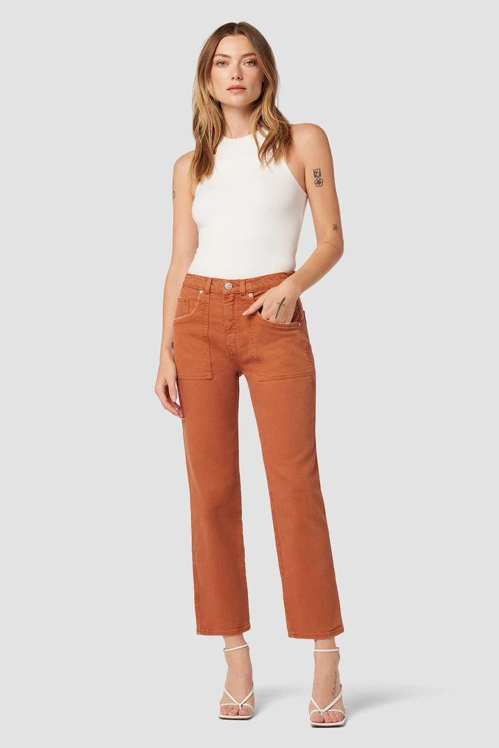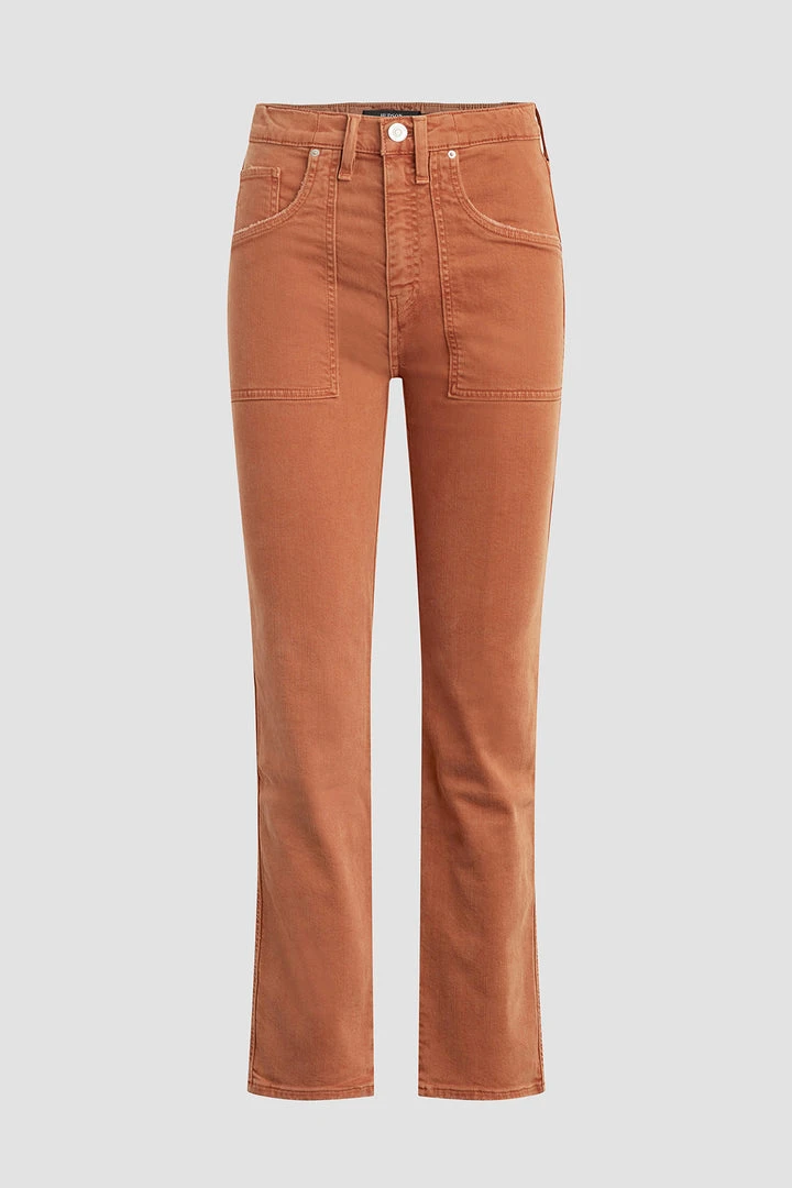 Our Remi High-Rise Straight Ankle Jean is cut with a flattering high rise, elastic waistband, and a cropped relaxed leg. The Bronzed wash is made from premium comfort stretch denim with front patch pockets.