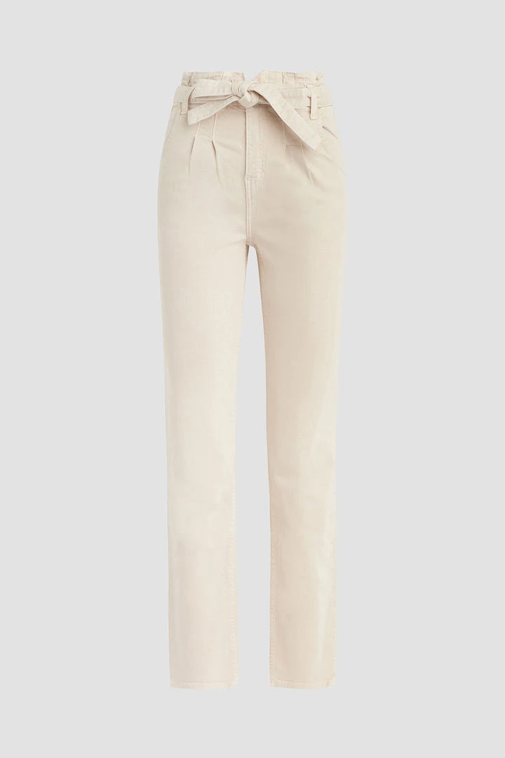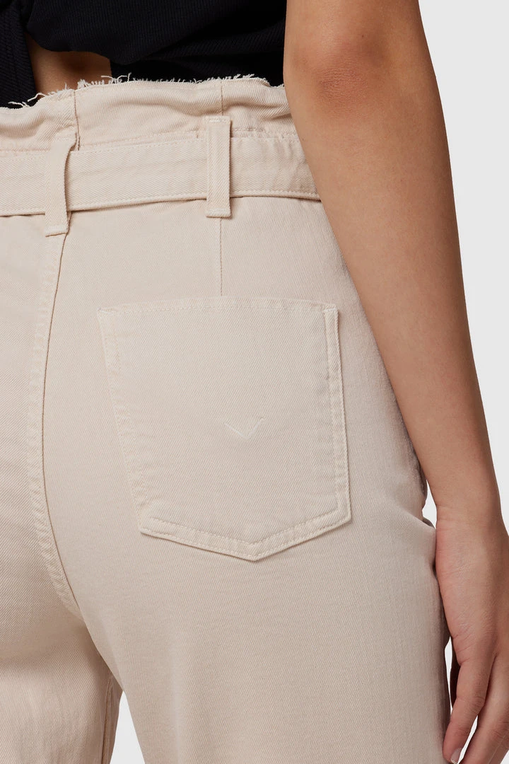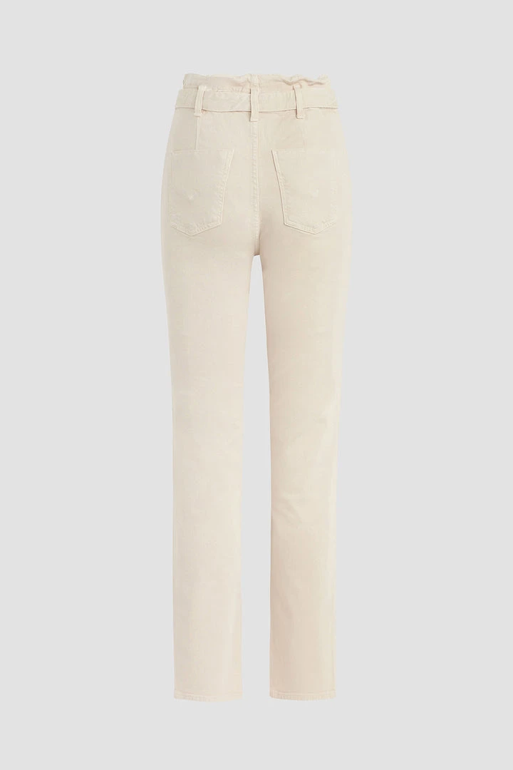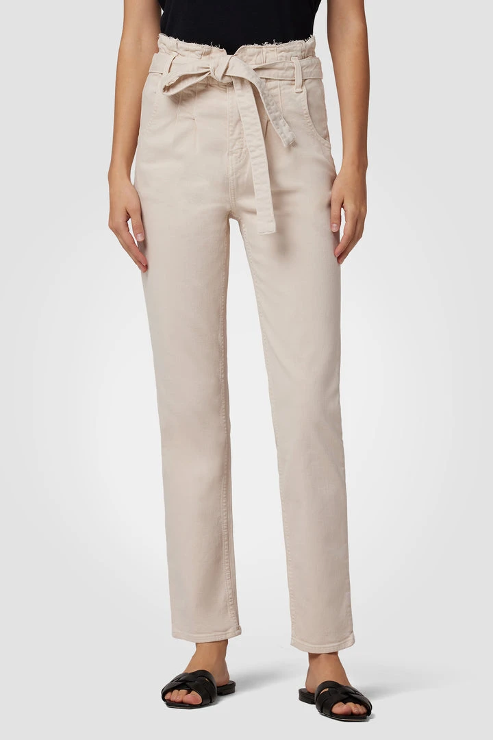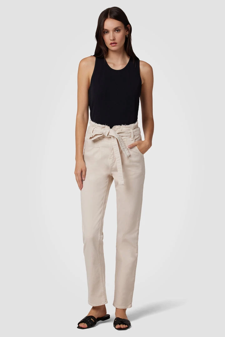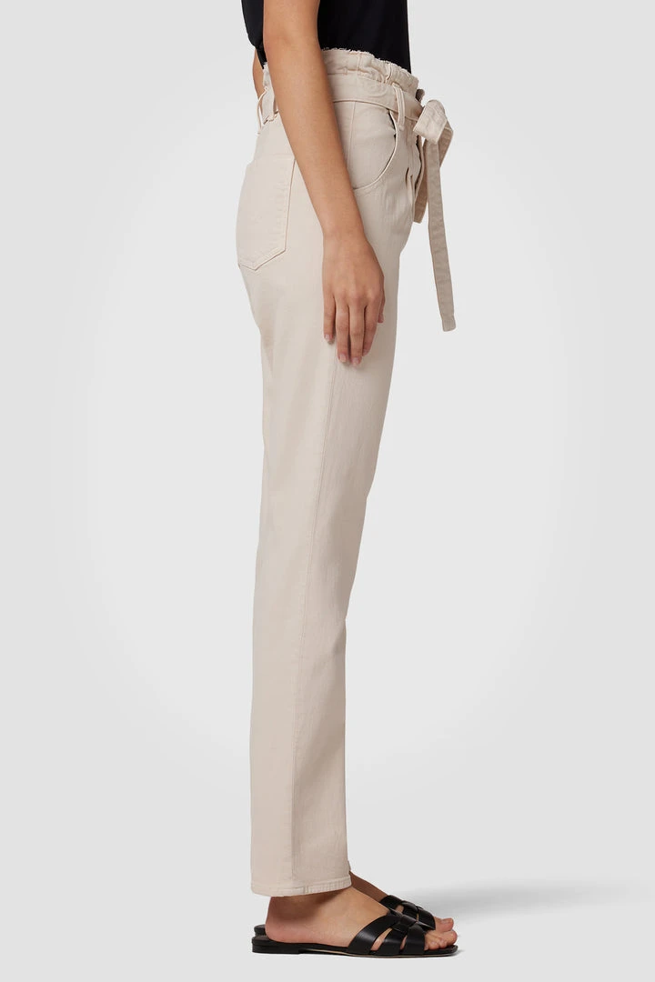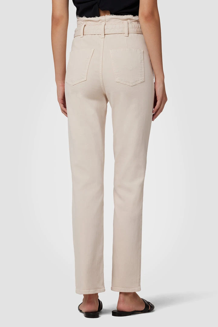 Our Remi High-Rise Paper Bag Ankle Pant in Brazilian Sand is cut with a straight, cropped fit from premium comfort stretch denim. Features a pleated paper bag waist, self-belt, and finished hem.