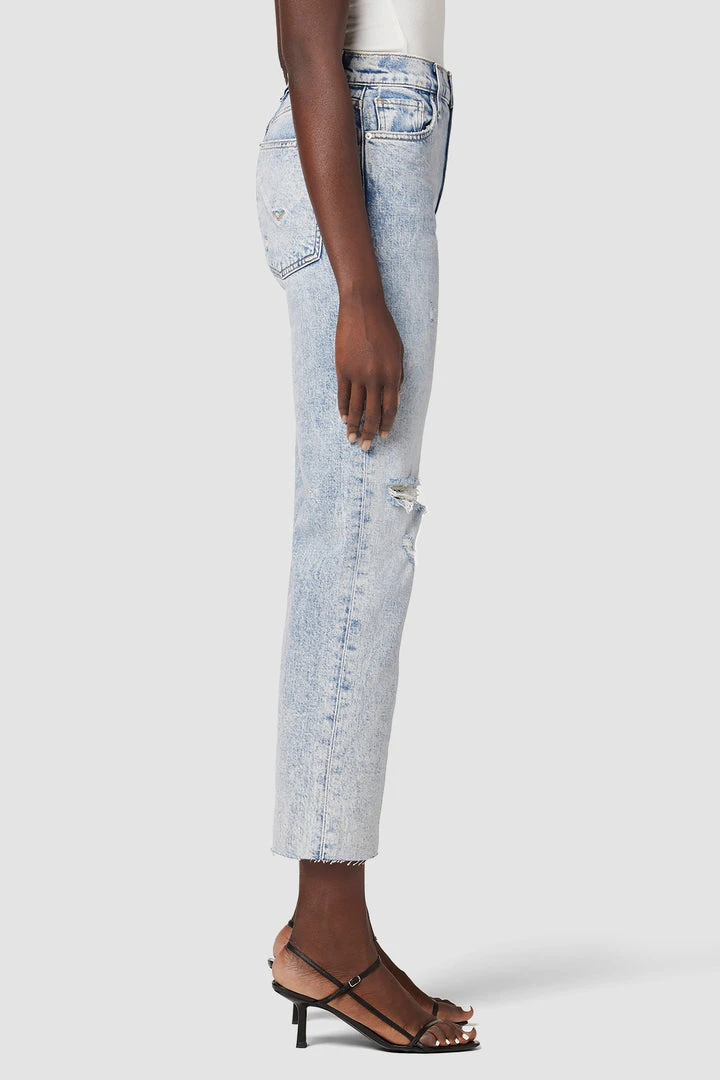 Like a ridiculously good vintage find, our Remi High-Rise Straight Crop Jean is cut with a flattering high rise and cropped relaxed leg. Complete with a cutoff hem and destruction at the knee, the light indigo Two Hearts wash is made from premium comfort stretch denim for an authentic look with added softness and flexibility.