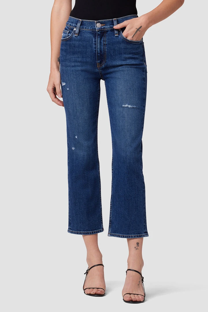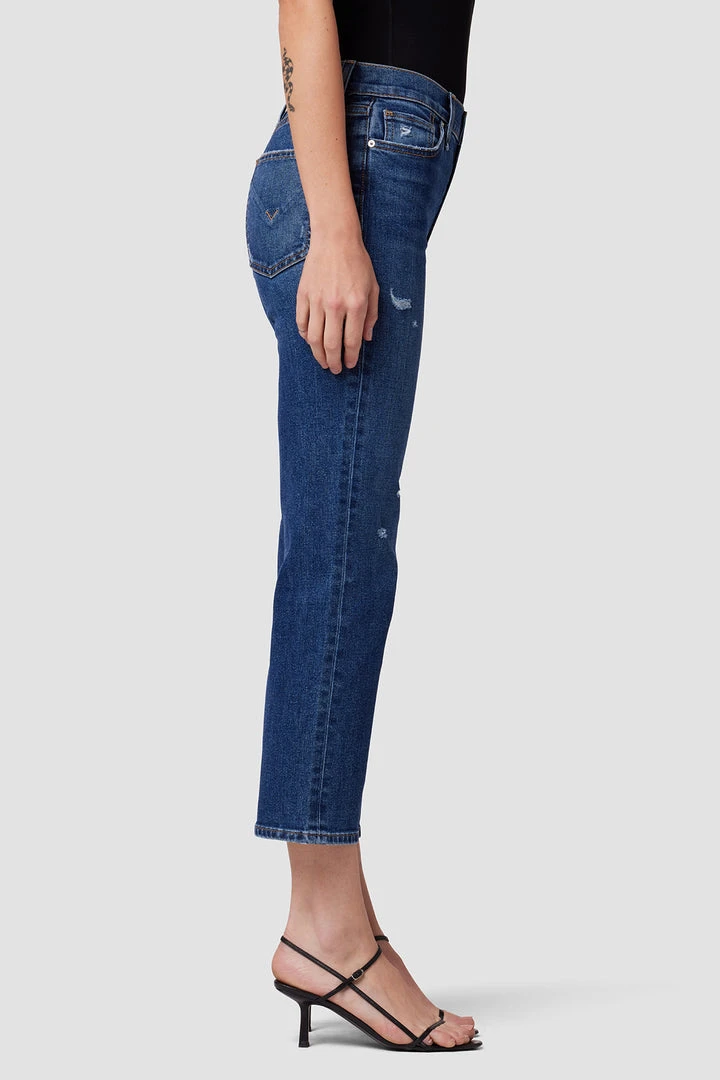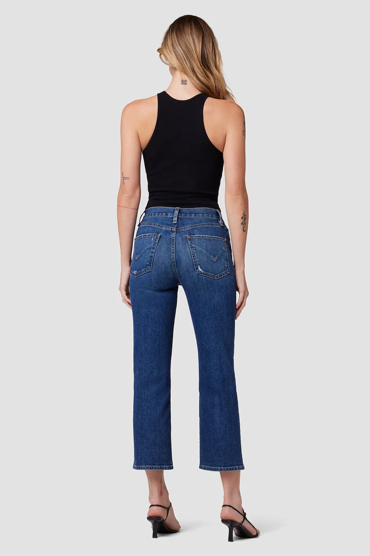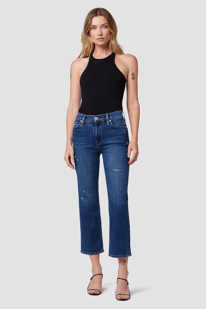 Like a ridiculously good vintage find, our Remi High-Rise Straight Crop Jean is cut with a flattering high rise and cropped wide leg. The medium indigo Quince wash is made from premium comfort stretch denim complete with vintage distressing.
