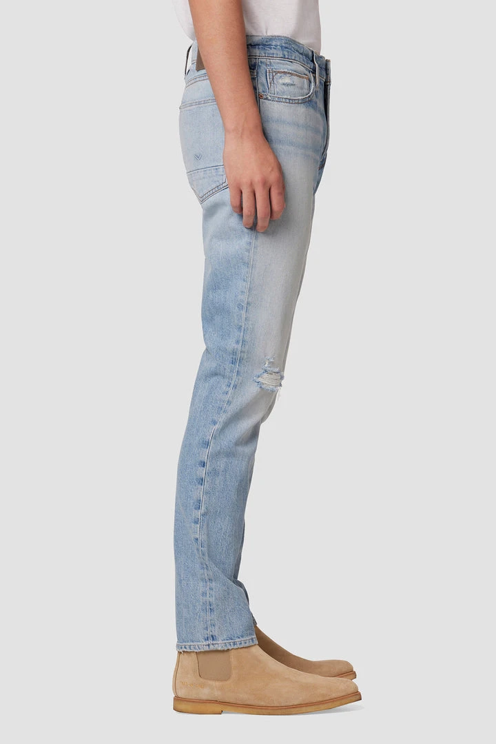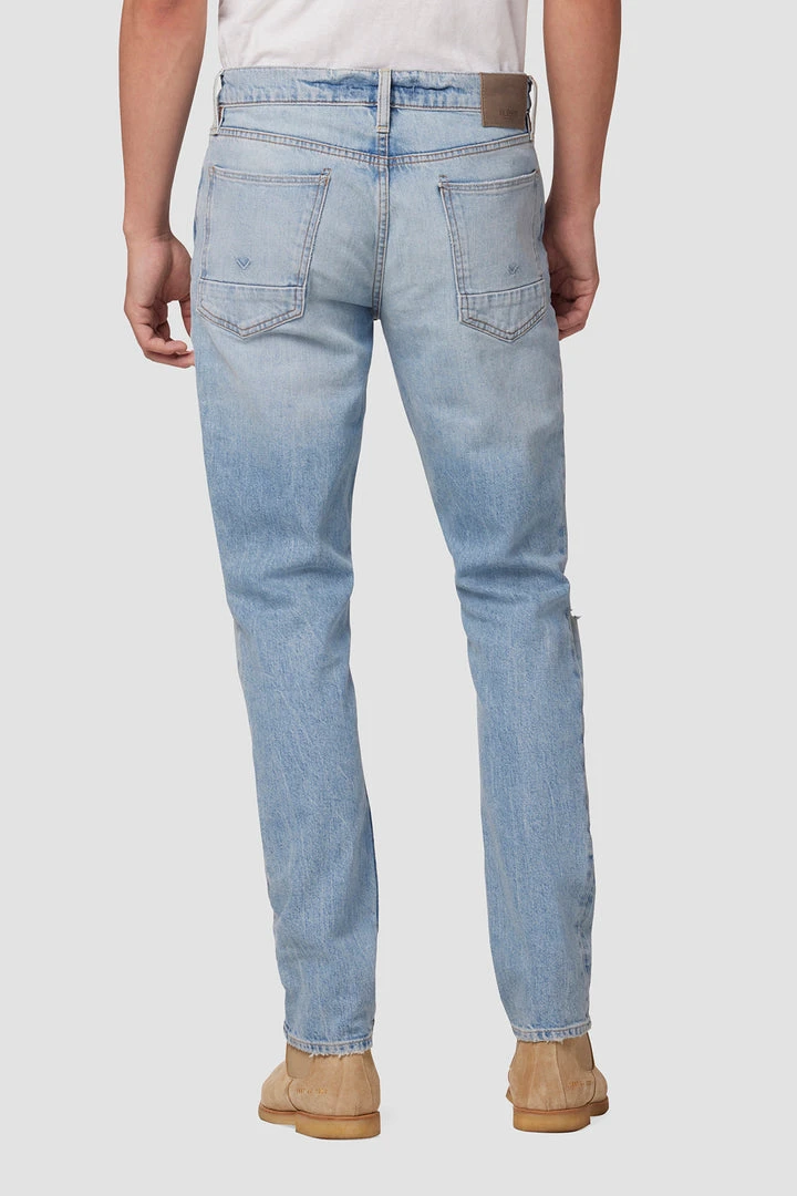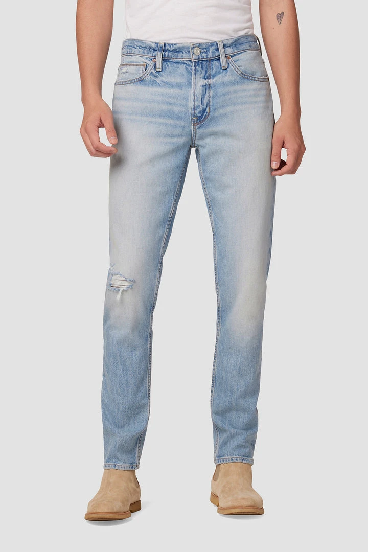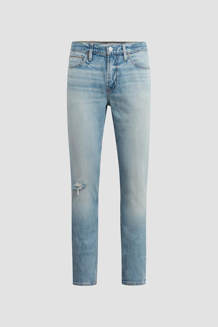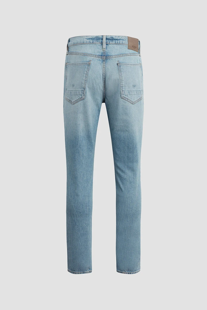 A slim signature, our mid-rise Axl is perfectly fitted through the hip, thigh, and leg. The medium indigo Silence wash is cut from premium comfort stretch denim with expert fading and destruction.