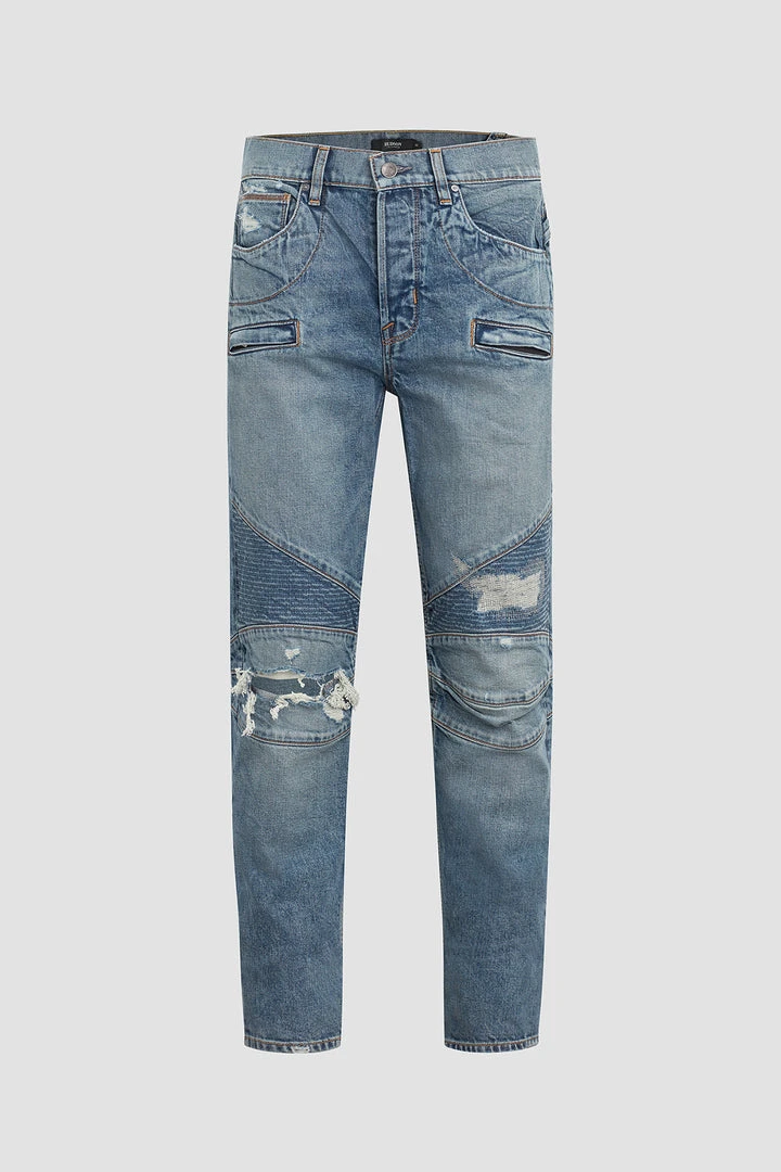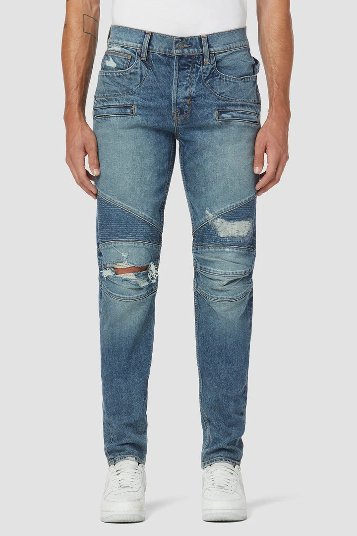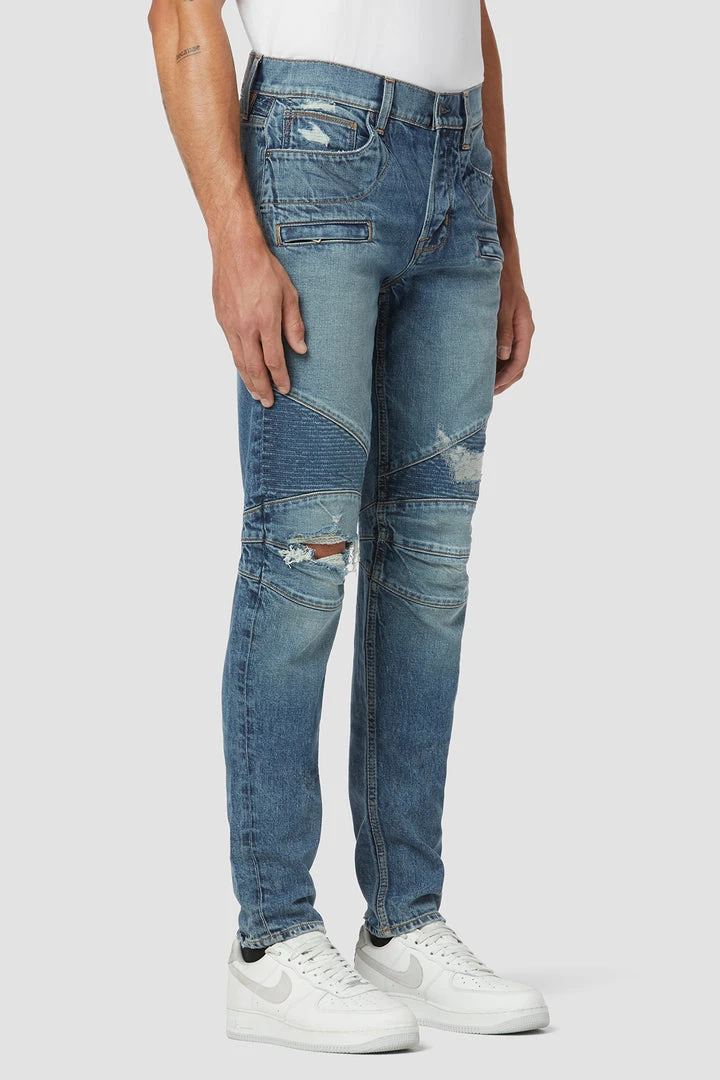 Our moto-inspired Blinder Biker V2 Skinny is cut extra-slim from premium denim with a hint of stretch for added softness, comfort, and flexibility. The medium indigo Palomar wash features two front zip pockets, ribbed leg panels, and expert distressing.