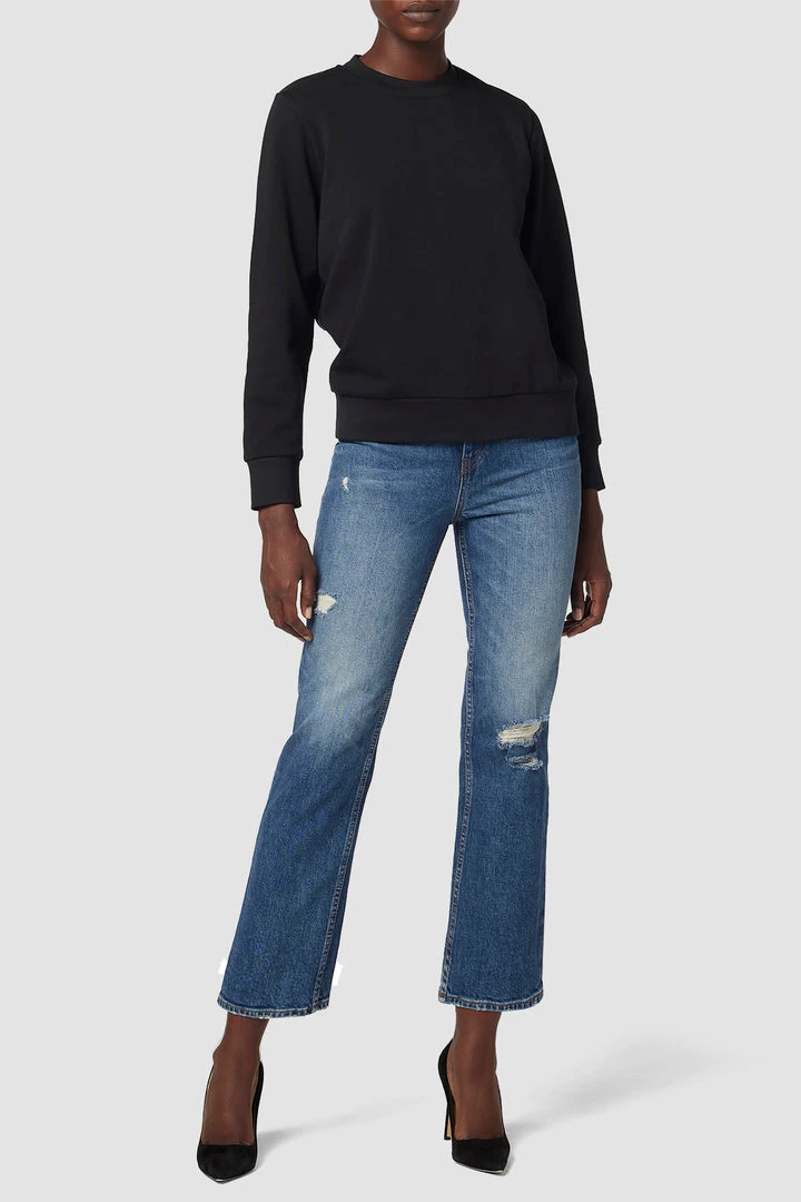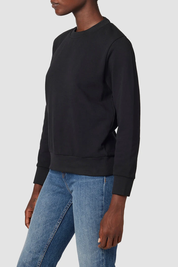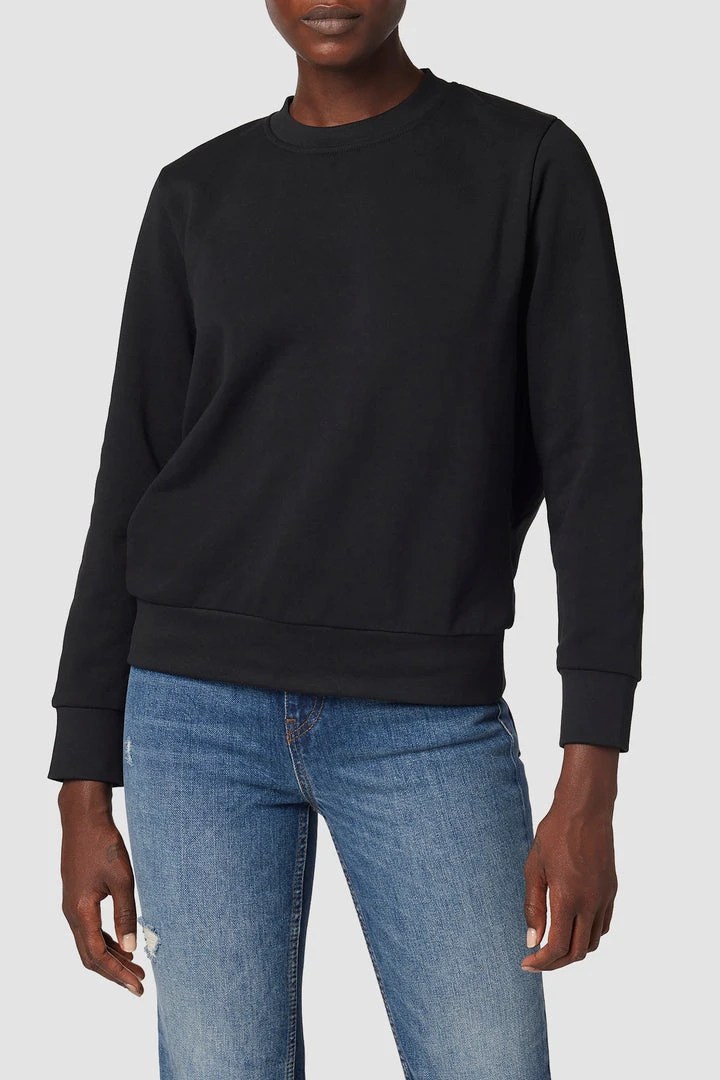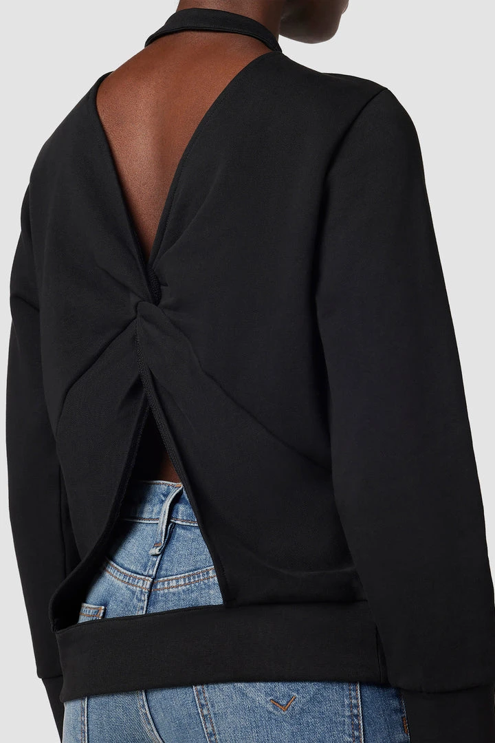 Our Crew Neck Back Knot Sweatshirt in Black is a 100% cotton knit featuring subtle puff sleeves and a twisted cutout back.
