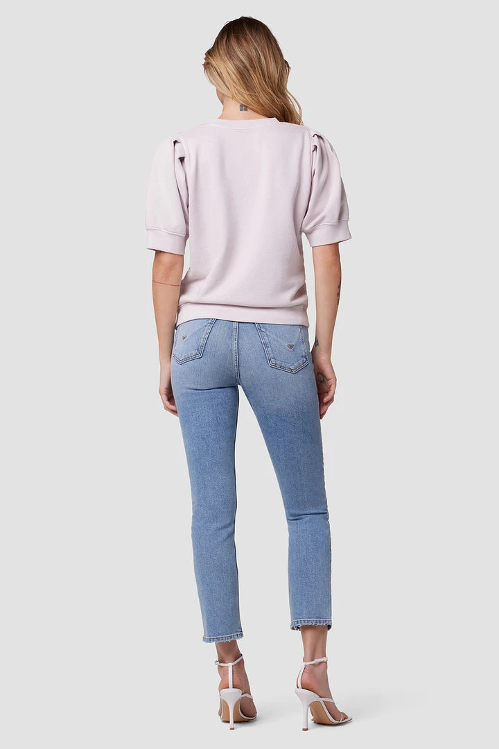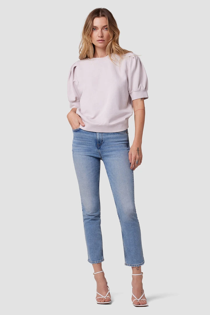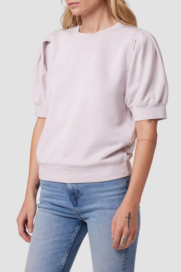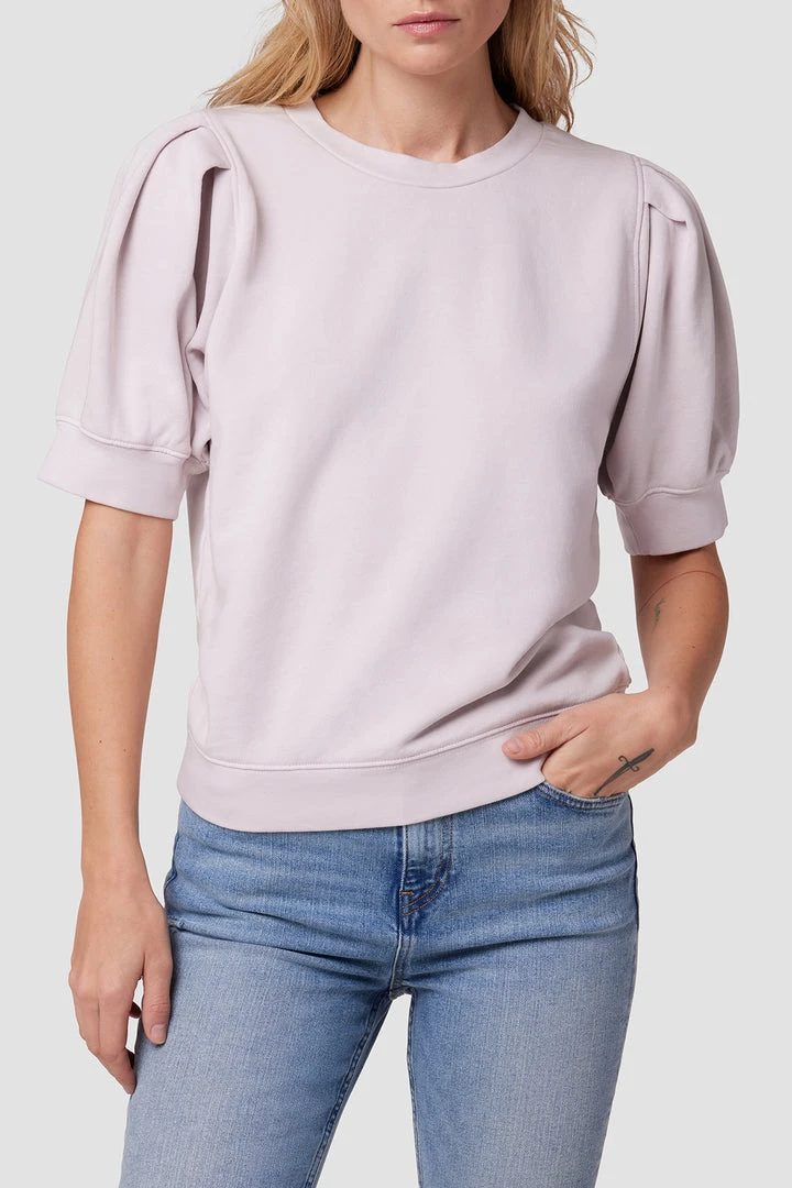 Made from 100% cotton, our Puff Sleeve Sweatshirt in Grey Lilac is a classic crewneck pullover redone with generously cut sleeves.