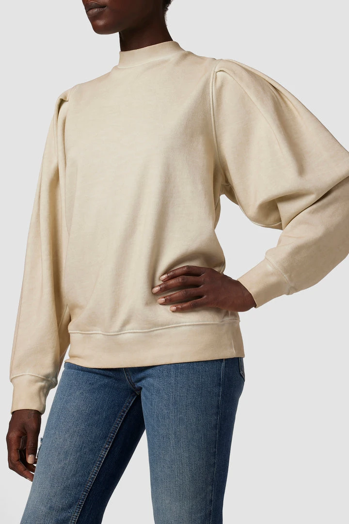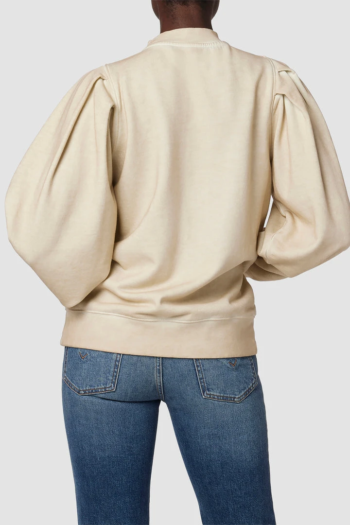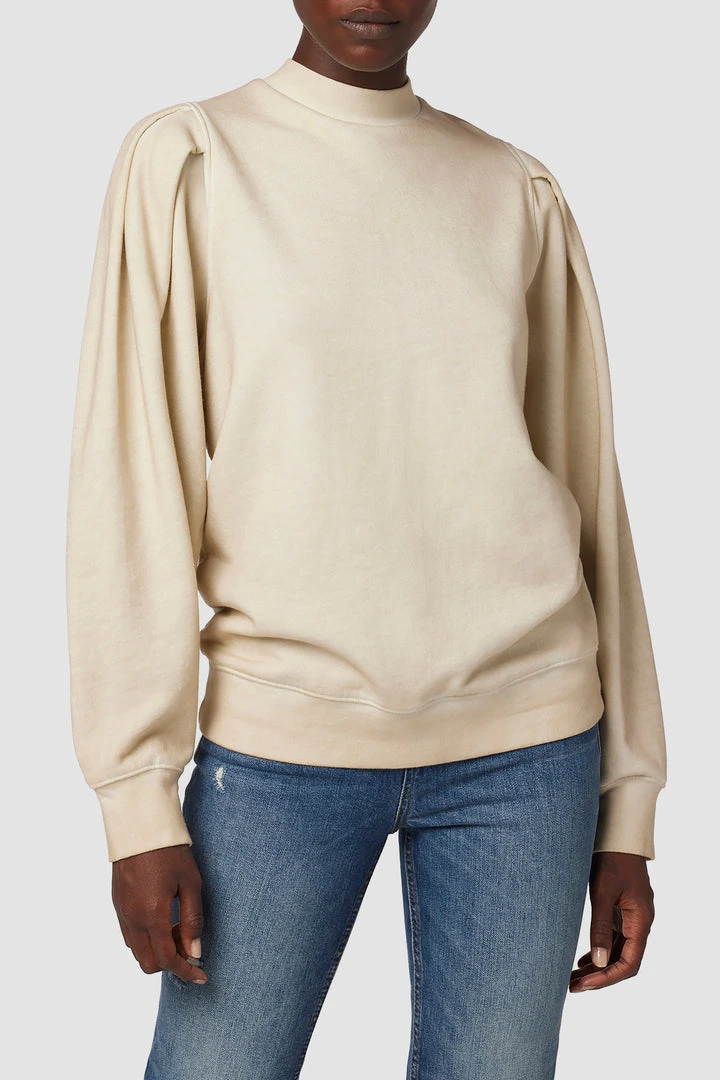 A sweater with something extra. Our Tuck Sleeve Sweatshirt in Wood Ash is cut with a roomy fit from 100% cotton and features pleated shoulder detail.