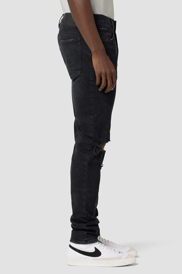 Our Slowmotion Skinny is cut for a slim, tapered fit from premium comfort stretch denim in the black 7 wash. Features expert fading, destruction, and classic five-pocket details.