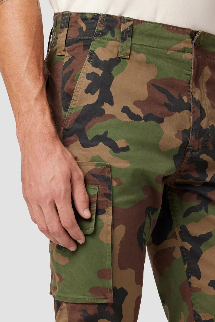 Our Stacked Slim Military Cargo Pant is cut for a slim, mid-rise fit from a durable stretch twill in Army Fatigue. Finished with classic cargo pockets and our screen-printed logo.