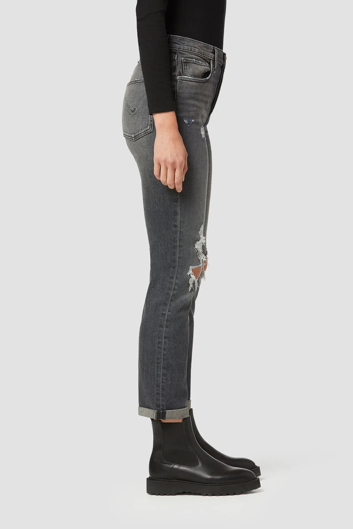 Ease up. Our Thalia 90’s Loose Fit Ankle Jean with rolled cuff is a relaxed cut straight out of the ’90s. Expertly destructed and designed to be worn with a slight slouch, the vintage black Sleep Easy wash is made from premium comfort stretch denim.