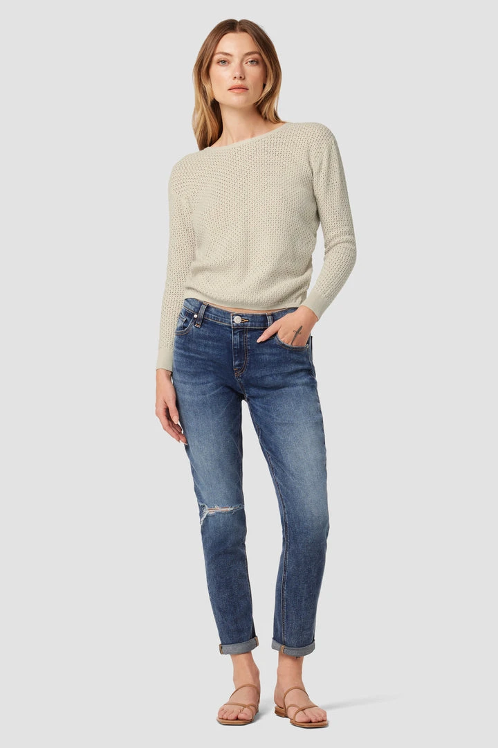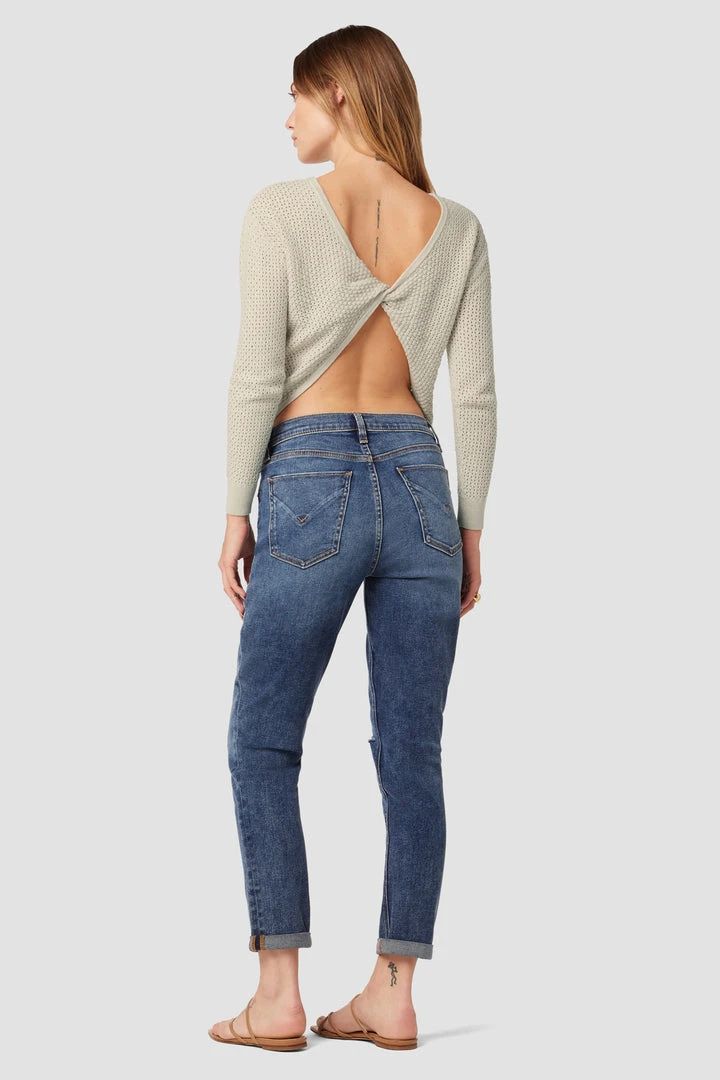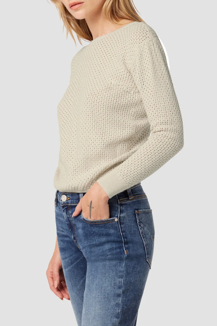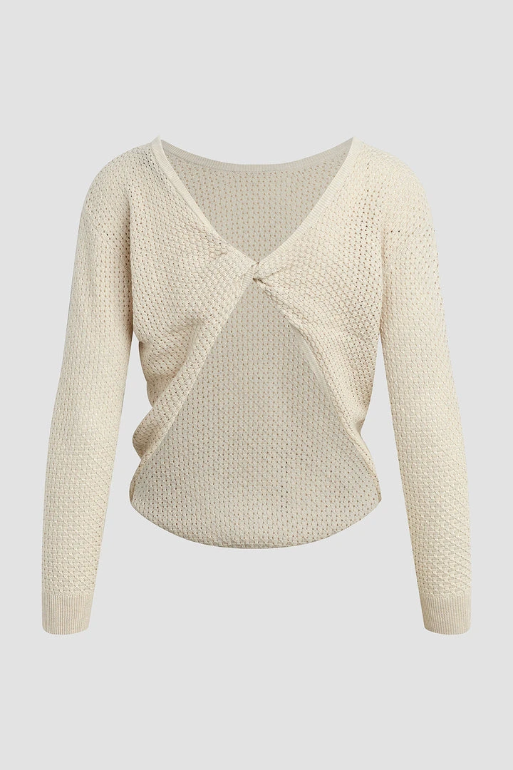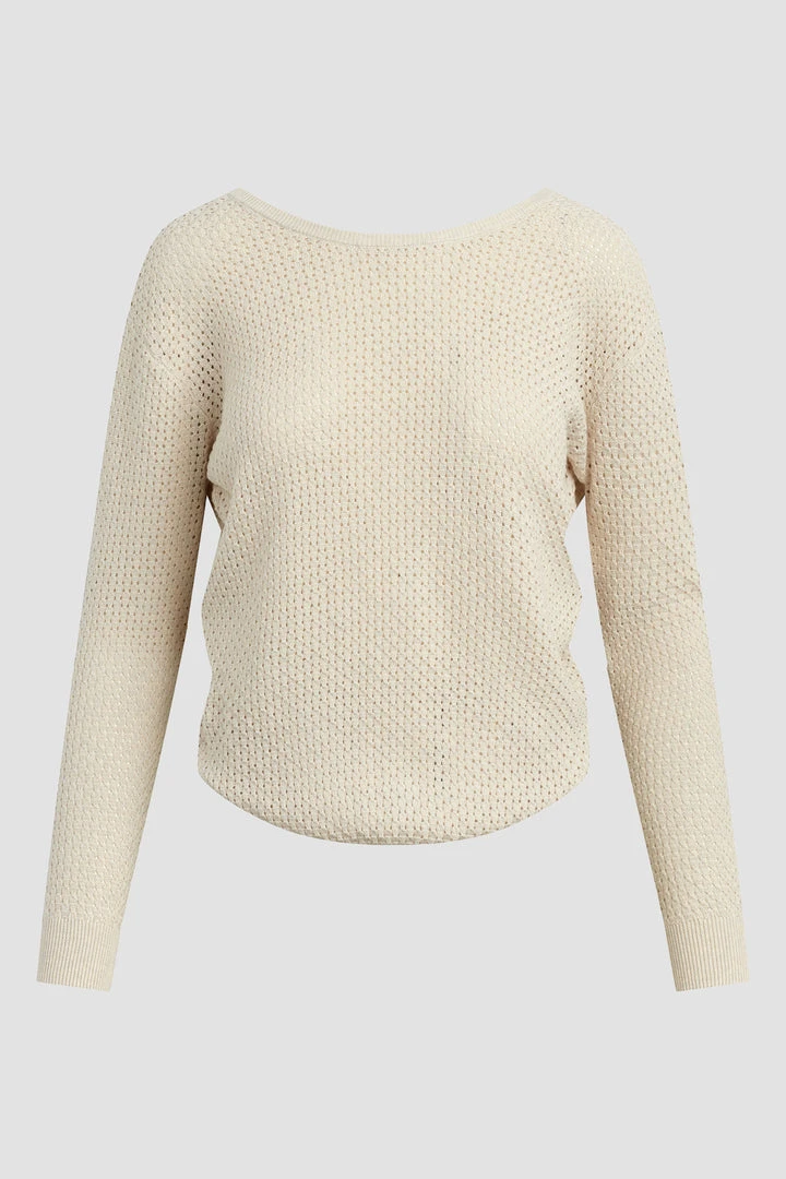 Our Twist Back Open Knit Sweater in Natural is a lightweight perforated knit made from soft 100% cotton.