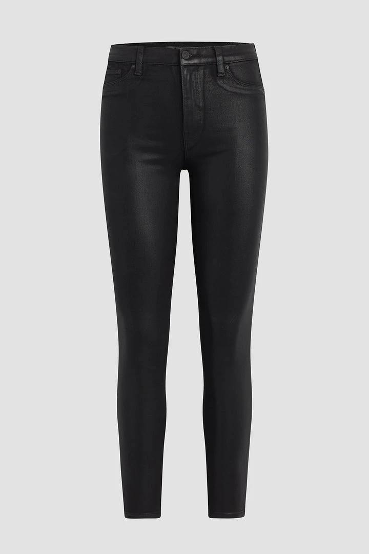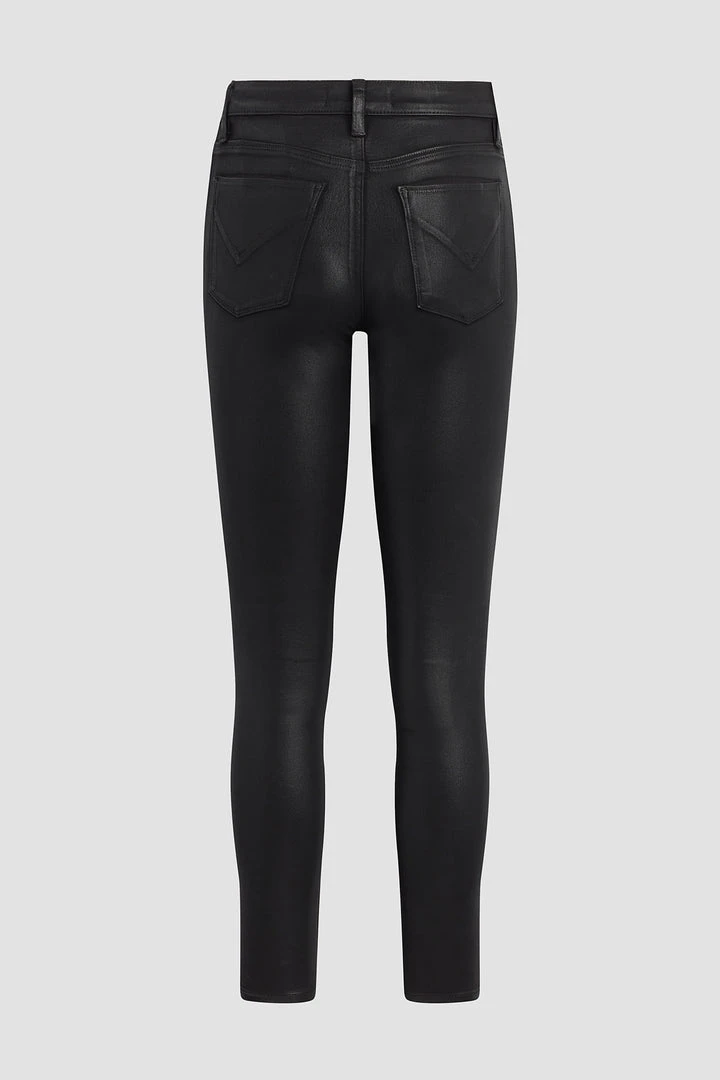 Our Barbara High-Rise Super Skinny Ankle Jean in Noir Coated is cut for a slim, contoured fit with an elevated waistline and a finished hem that’s cropped at the ankle. Made from premium stretch denim specially treated with a high-shine wax coating, it’s finished with classic five-pocket details.