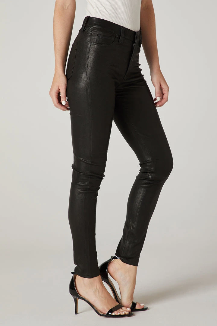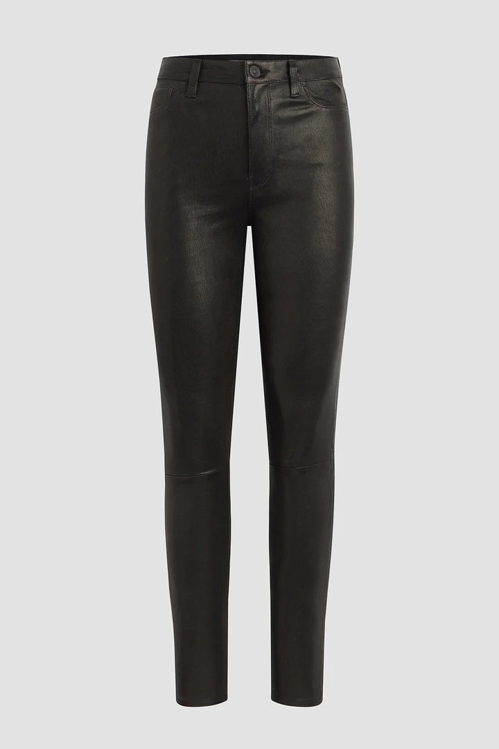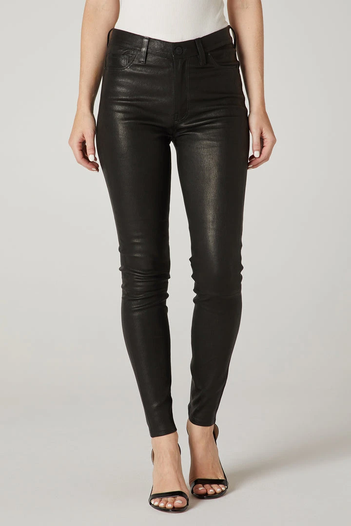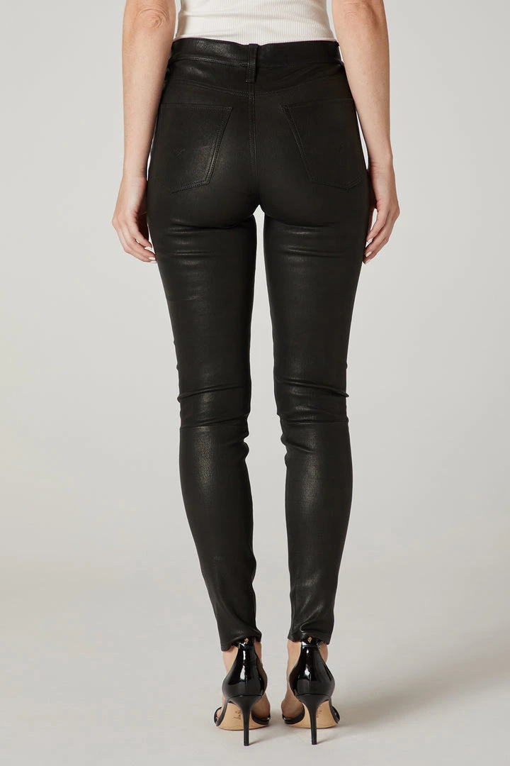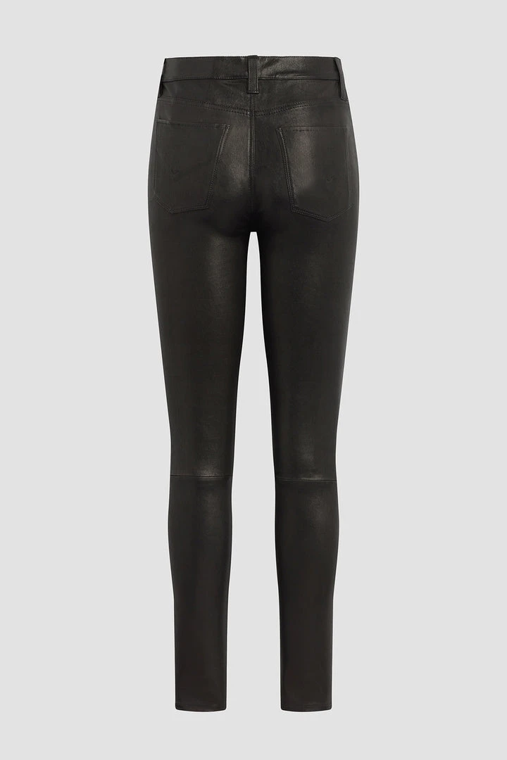 A rock and roll classic, reconsidered. Our Barbara High-Rise Super Skinny Jean in Black is crafted from panels of supple, stretchy lamb leather with a sleek, glossy finish. Skinny fit. Slim at the ankle. Sits high at the waist. Check, check, check.