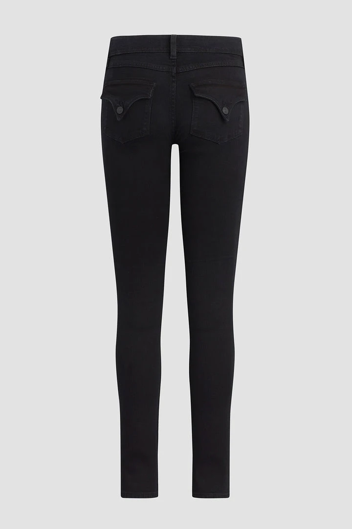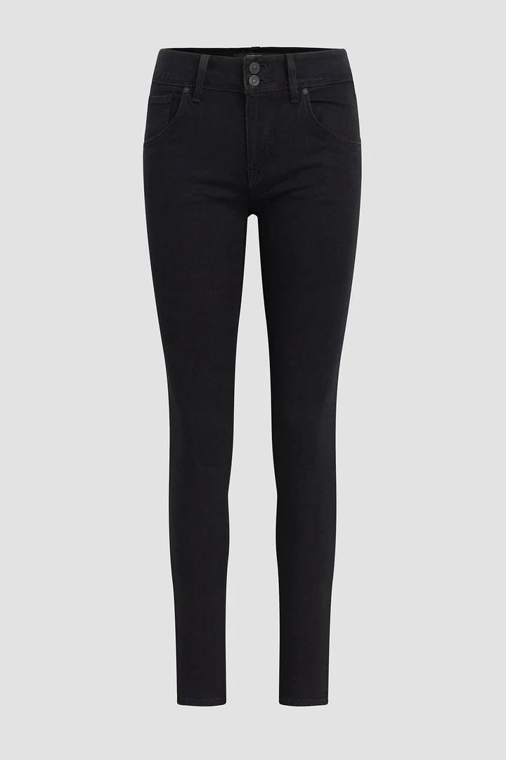 Cut from soft, super stretch denim designed to hold its shape with extended wear, our Collin Mid-Rise Skinny Jean in Black features tonal stitching, a finished hem, and our signature button-flap back pockets.