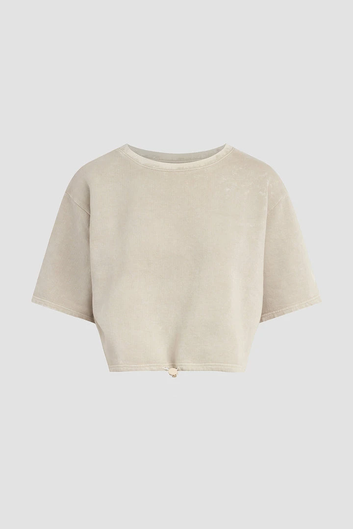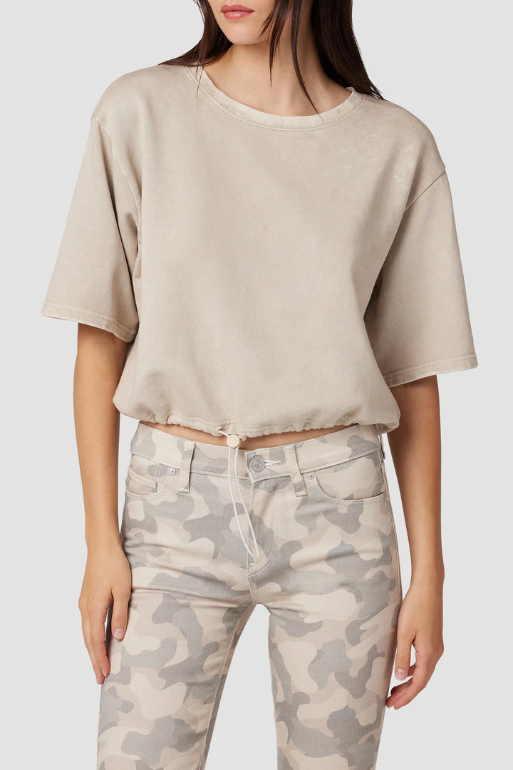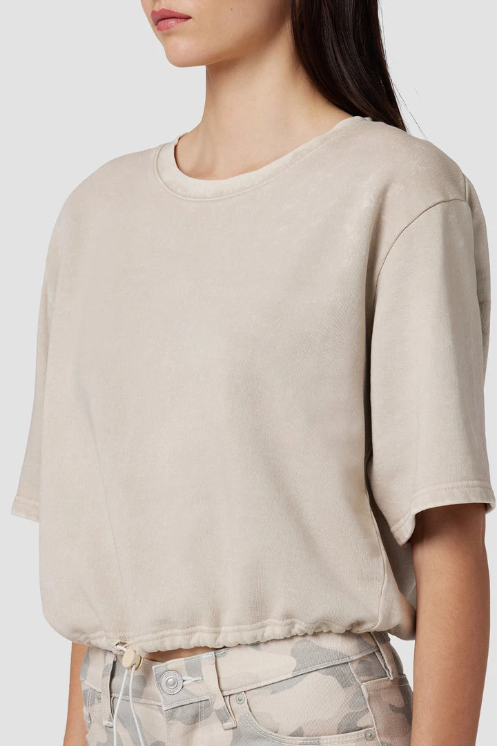 Our Drawstring Sweatshirt in Faded Peyote is an easy-fit crewneck knit cut from 100% cotton, complete with an adjustable drawstring hem.