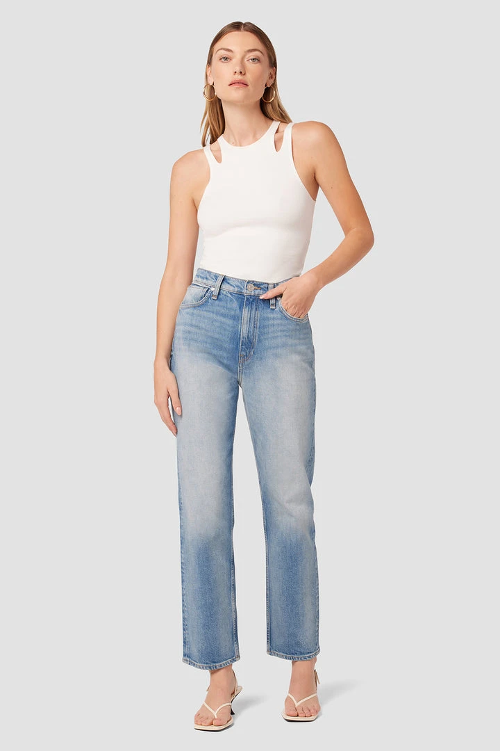 Our Jade High-Rise Straight Leg Jean in Birds of Paradise is cut with a loose, ’90s-inspired fit from premium denim with a hint of stretch for extra comfort. The