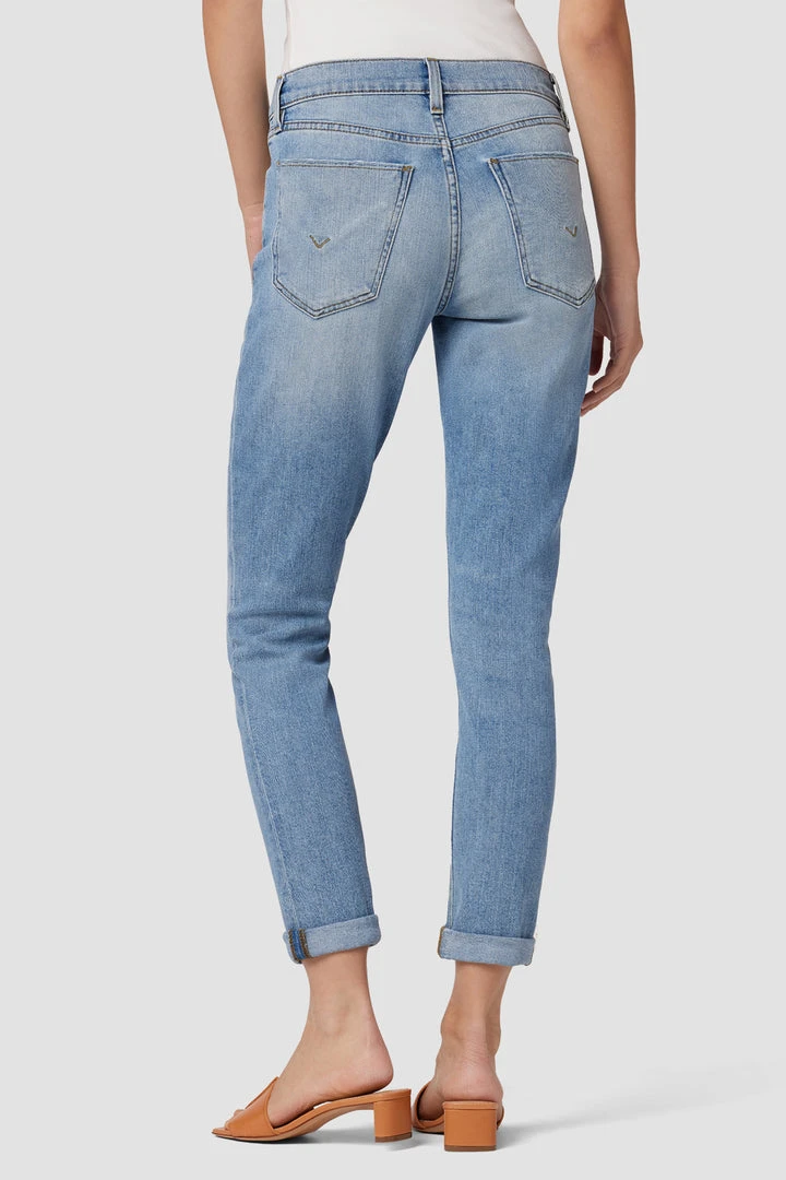 Our Lana Mid-Rise Boyfriend Crop Jean is cut for an easy fit from premium comfort stretch denim. The light indigo My Girl wash features gentle fading, back pocket destruction, and cropped hems.