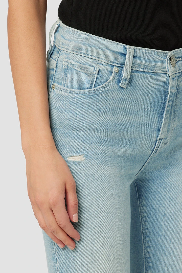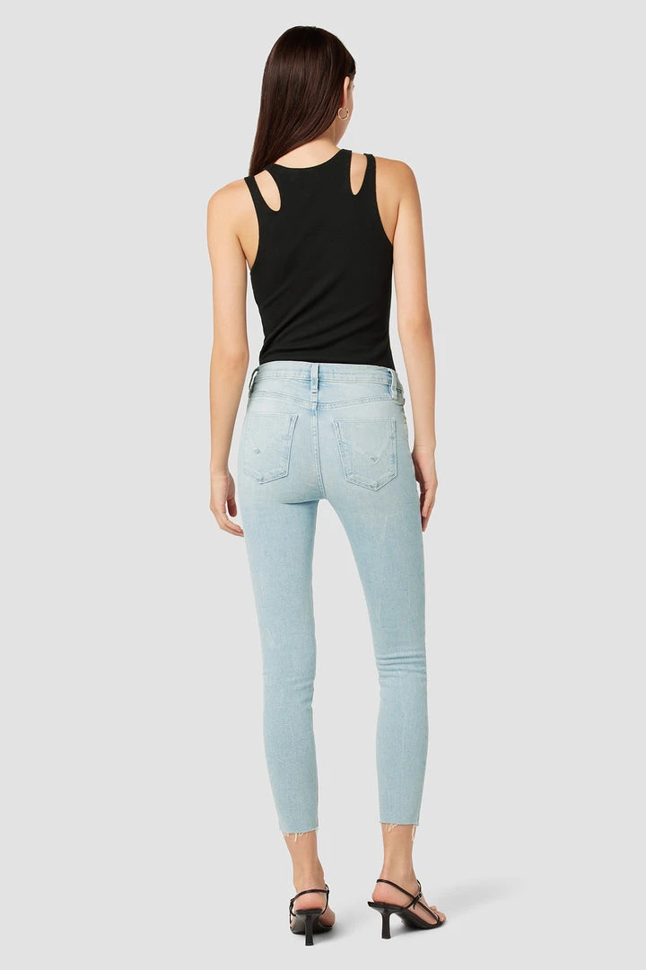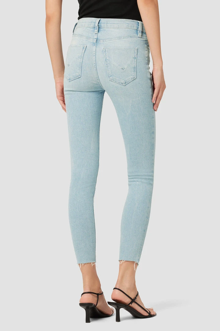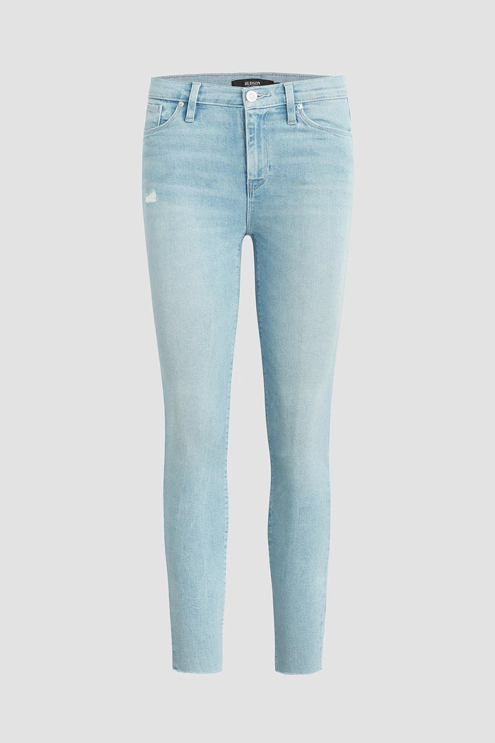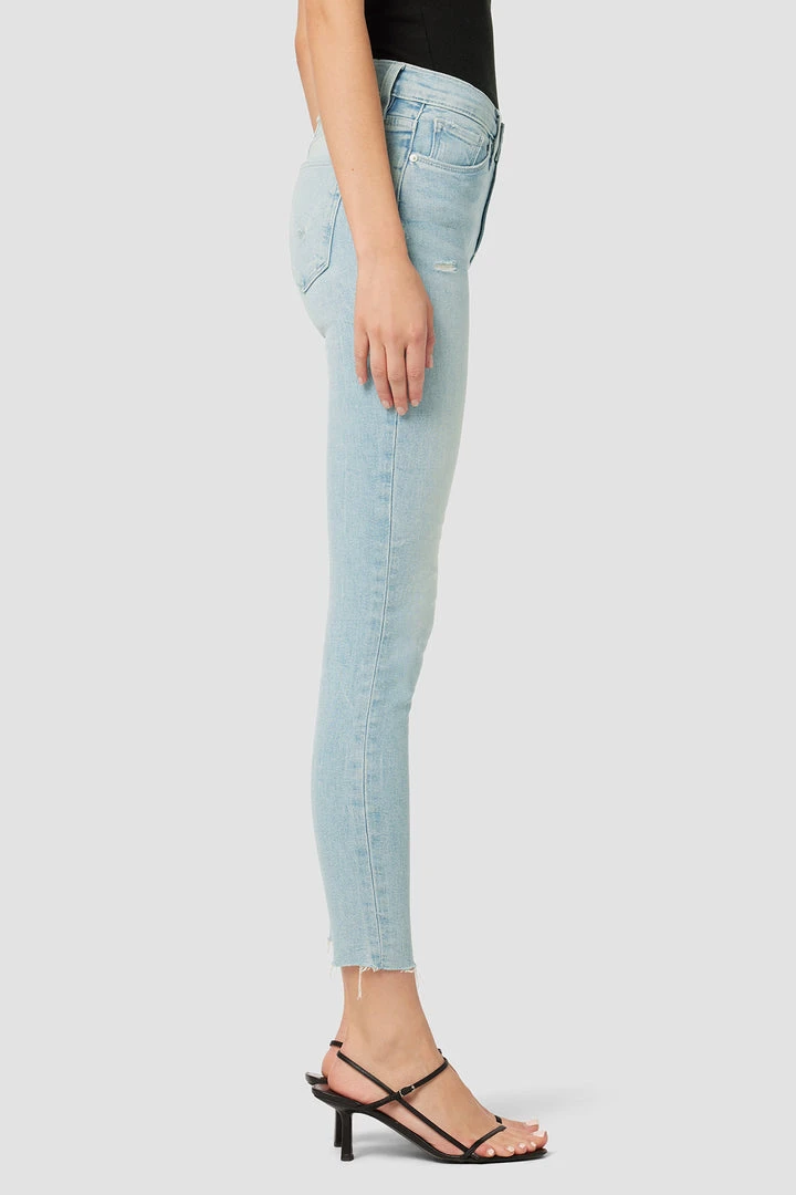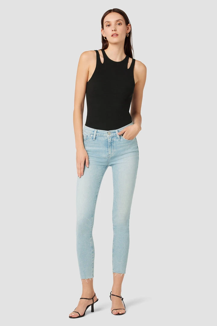 Our Nico Mid-Rise Super Skinny Crop Jean in light indigo Baby Love is crafted from premium stretch denim with a holds-you-in fit. Slim at the ankle. Sits at the natural waist.