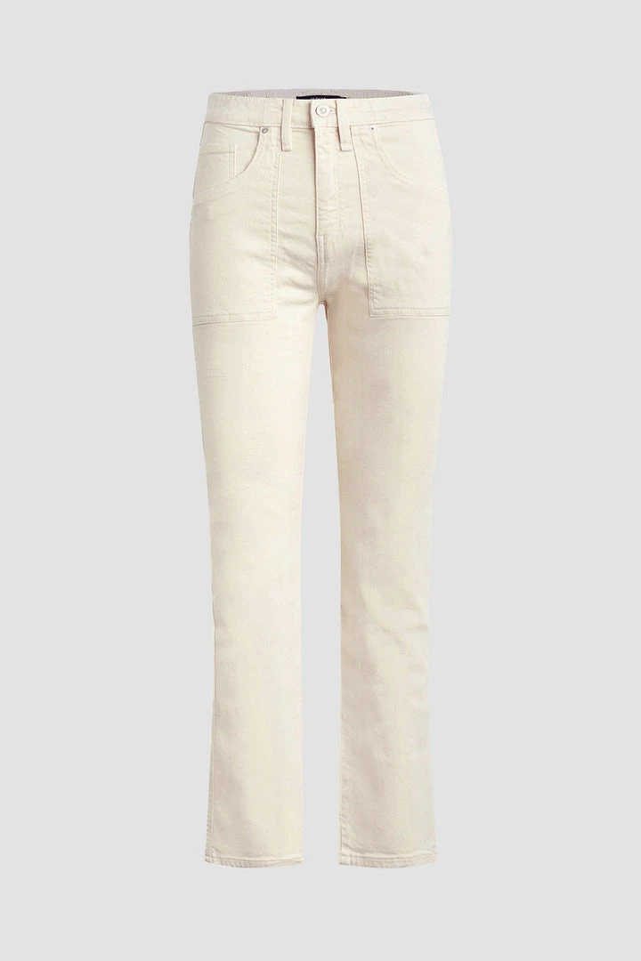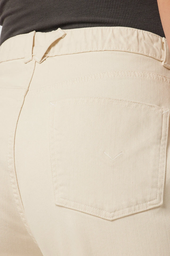 Our Remi High-Rise Straight Ankle Jean is cut with a flattering high rise, elastic waistband, and a cropped relaxed leg. The Ecru wash is made from premium comfort stretch denim with front patch pockets.