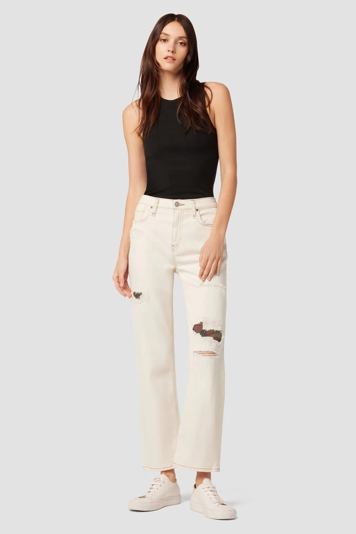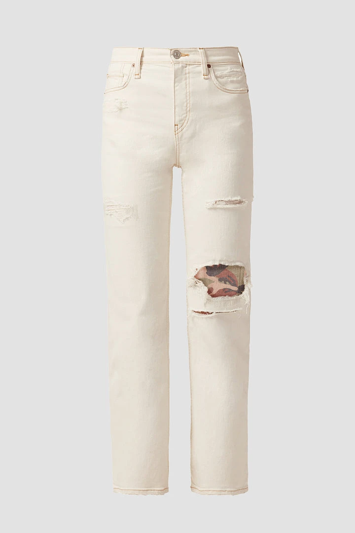 Our Remi High-Rise Straight Ankle Jean is cut with a flattering high rise and cropped relaxed leg. The Rip and Repair wash is made from premium comfort stretch denim with destruction and peekaboo camo print. Complete with classic five-pocket details.