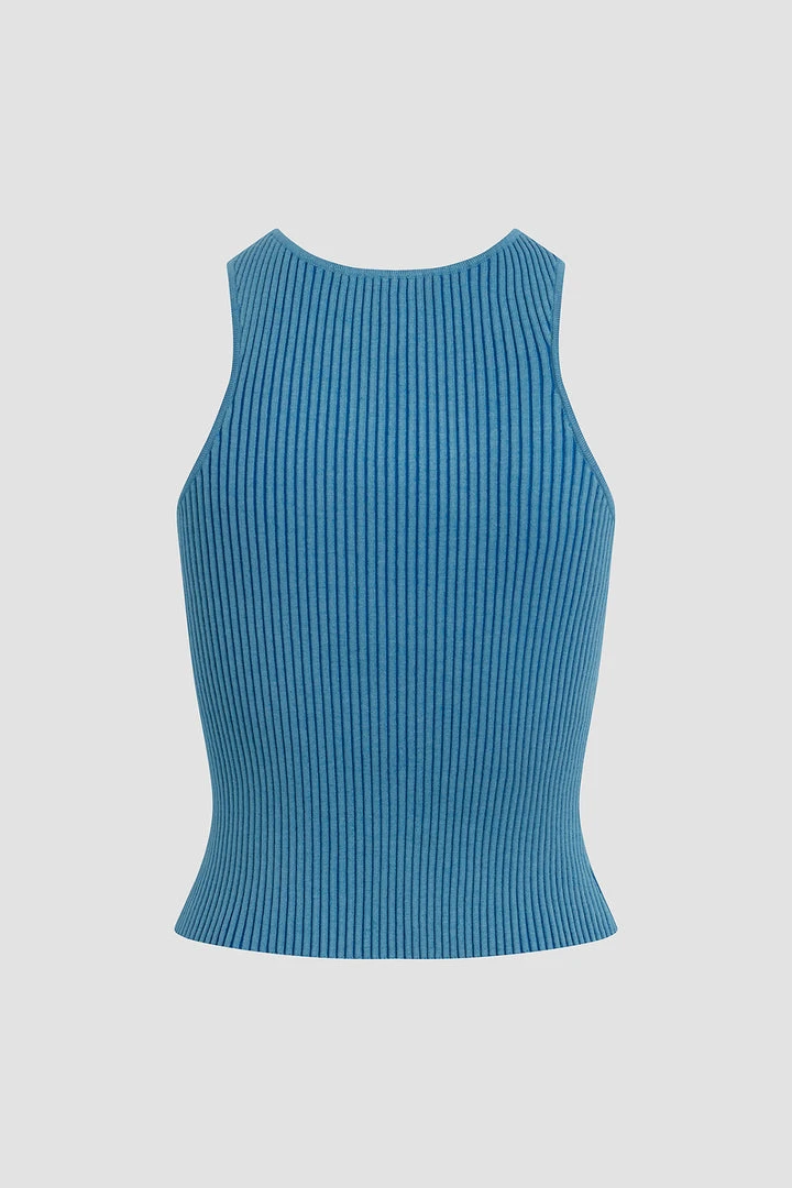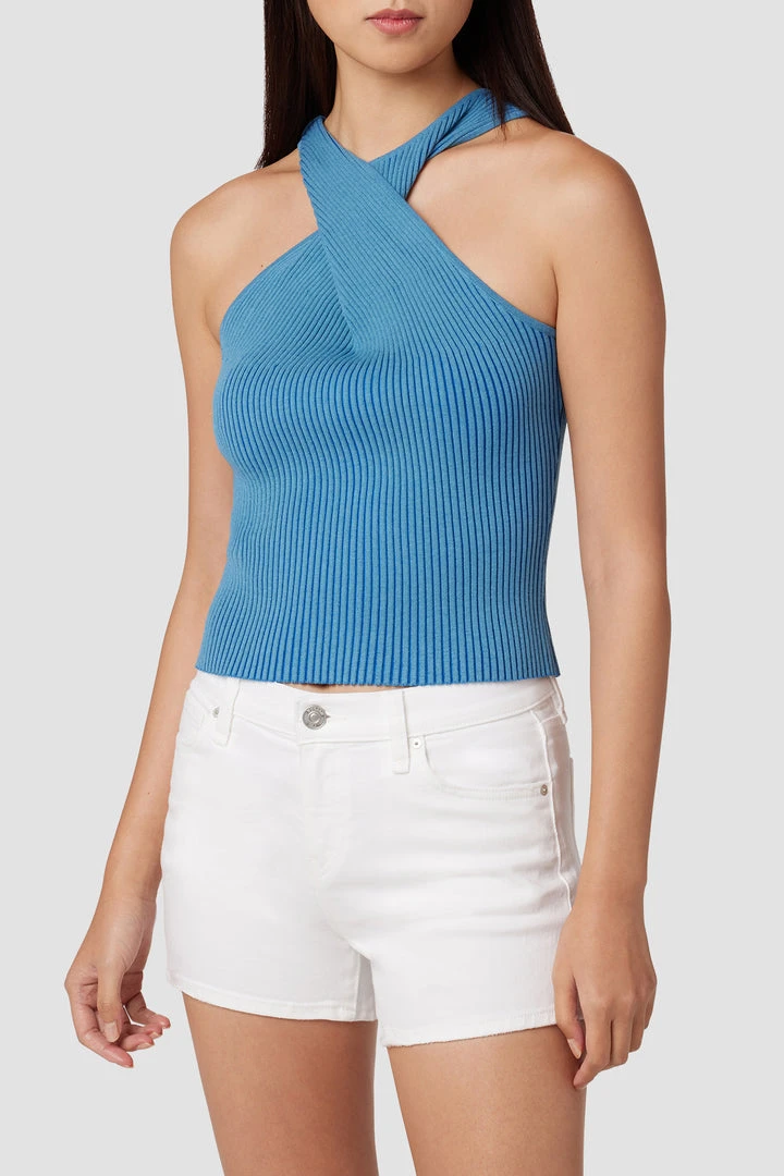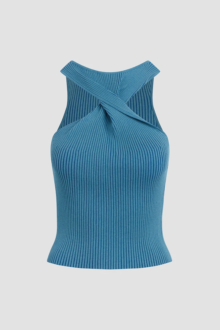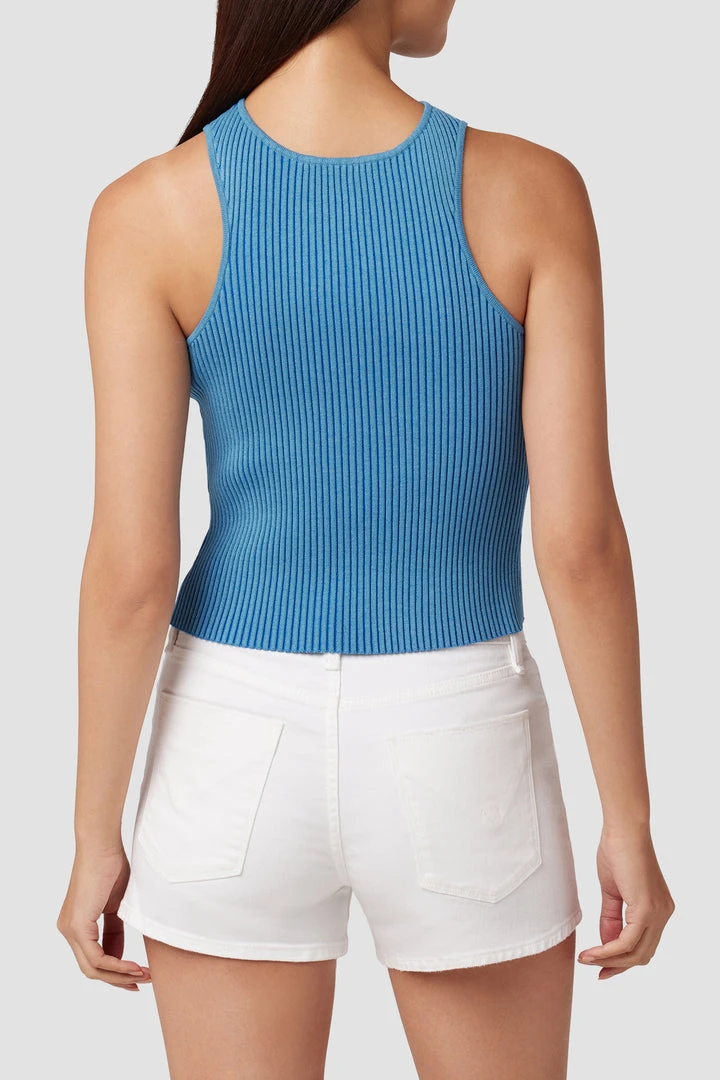 Our Twist Tank in Capri Breeze is cut from a soft rib knit with an eye-catching twisted neckline.