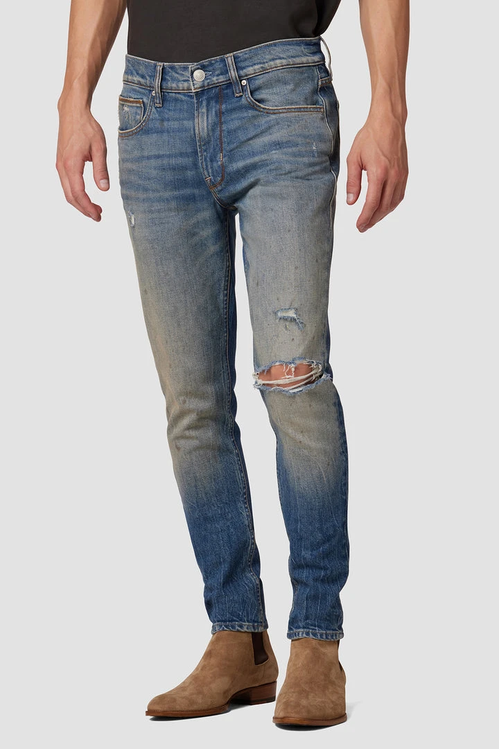 For a snug fit, look no further than our Zack Skinny Jean. Mid-rise, slim through the hip and thigh with a narrow leg. Expertly stained and distressed for an amped up vintage vibe, the Gallery wash is cut from premium comfort stretch denim with classic five-pocket details.