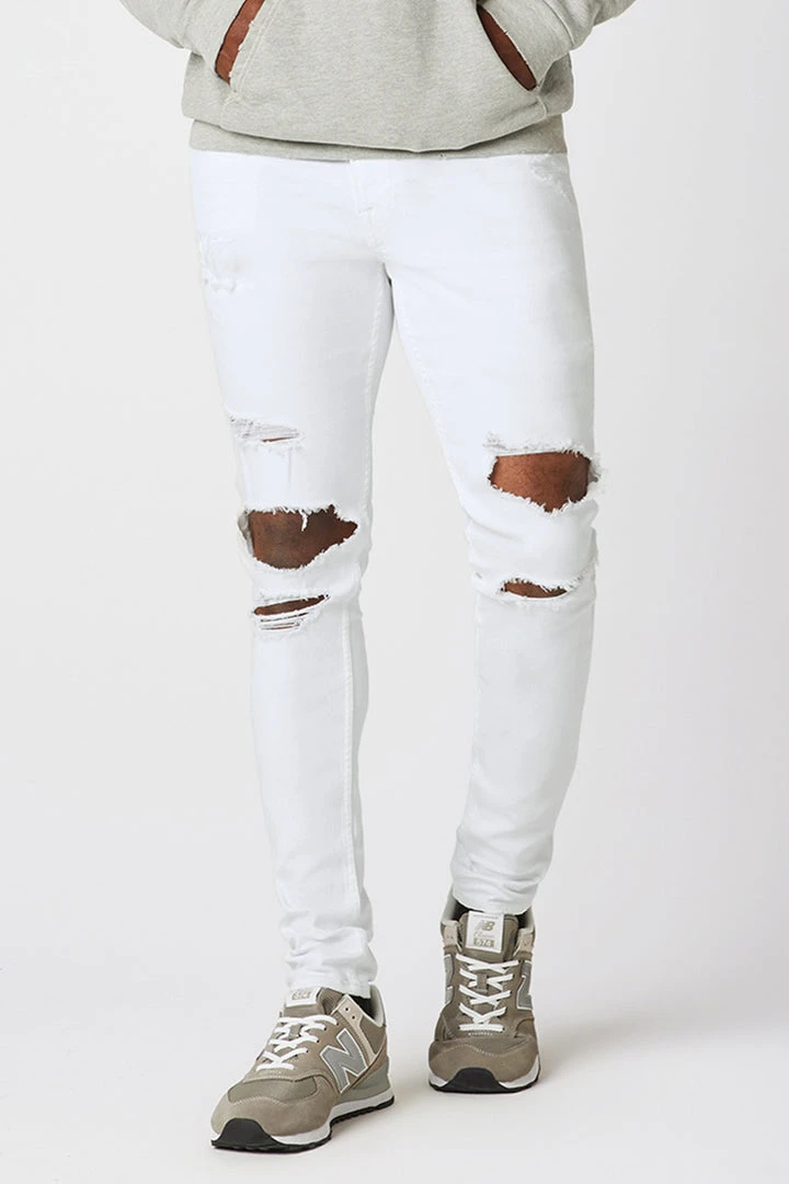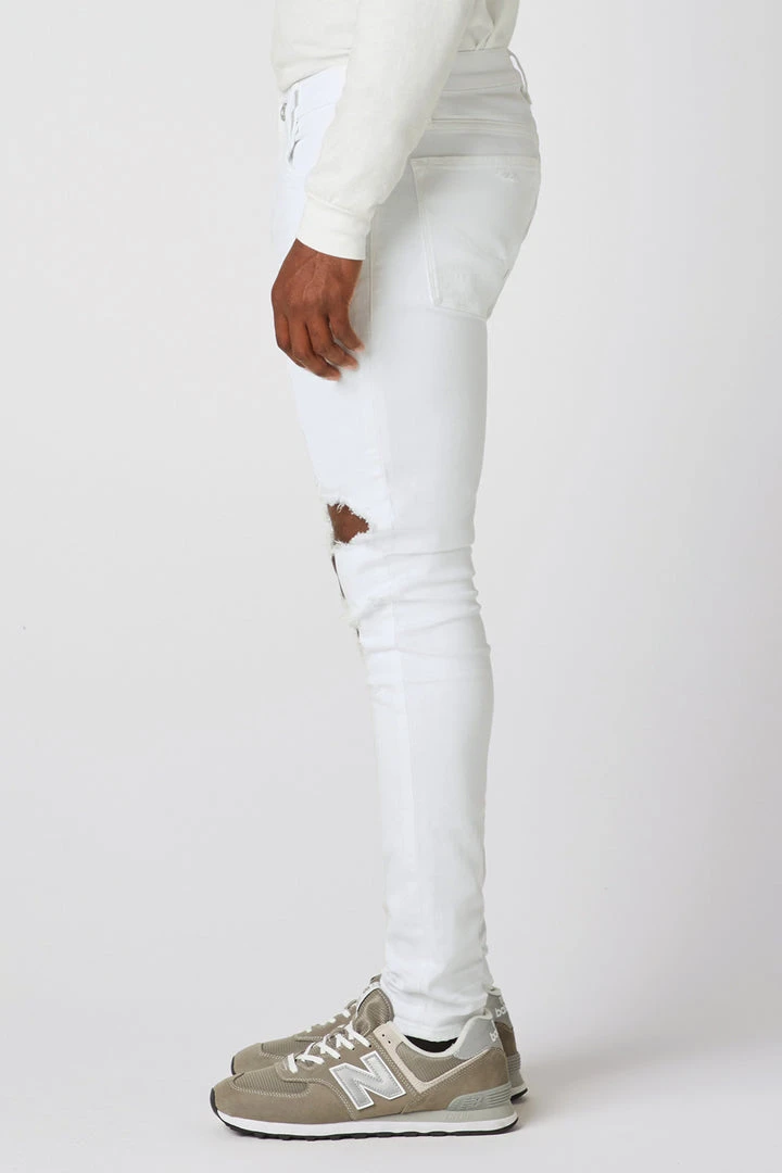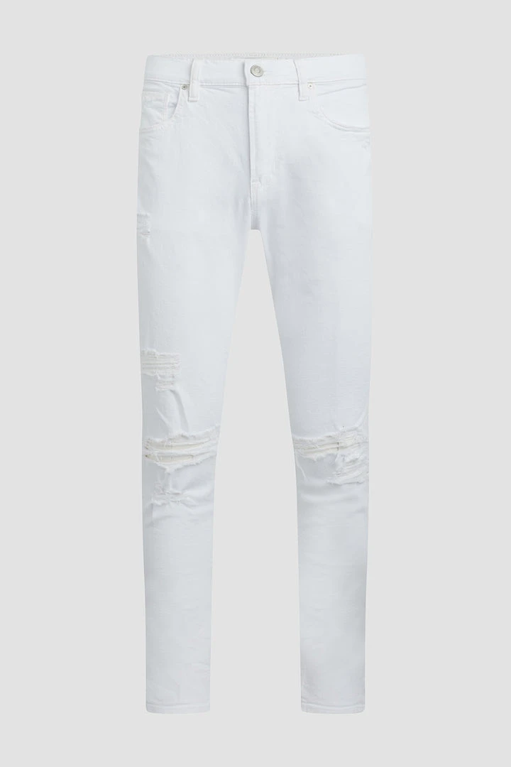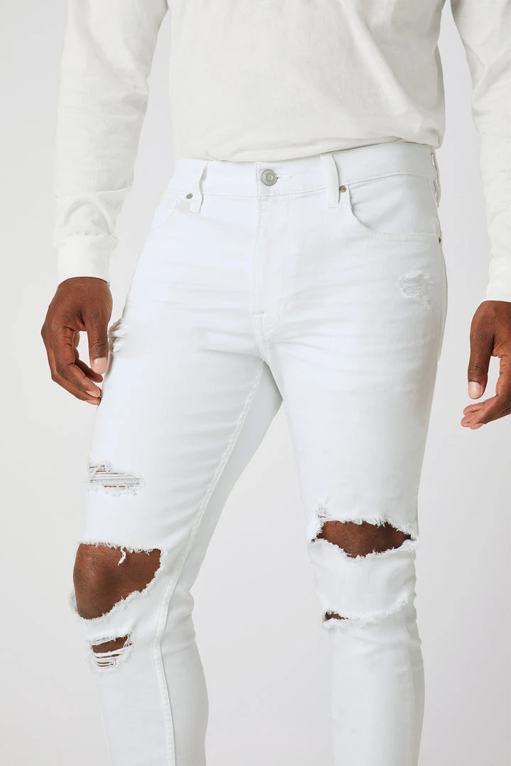 For a snug fit, look no further than our Zack Skinny Jean. Mid-rise, slim through the hip and thigh with a narrow leg. Unknown is a white wash, heavily distressed at the knee, it’s cut from 12.75-ounce Italian denim that has an authentic, worn-in vintage feel with a hint of stretch for added softness, comfort, and flexibility.