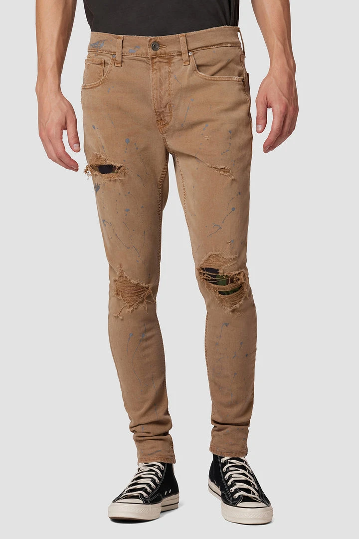 For a snug fit, look no further than our Zack Skinny Jean. Mid-rise, slim through the hip and thigh with a narrow leg. The Desert Army wash is cut from premium comfort stretch denim that’s paint-splattered and distressed for an amped up vintage look.
